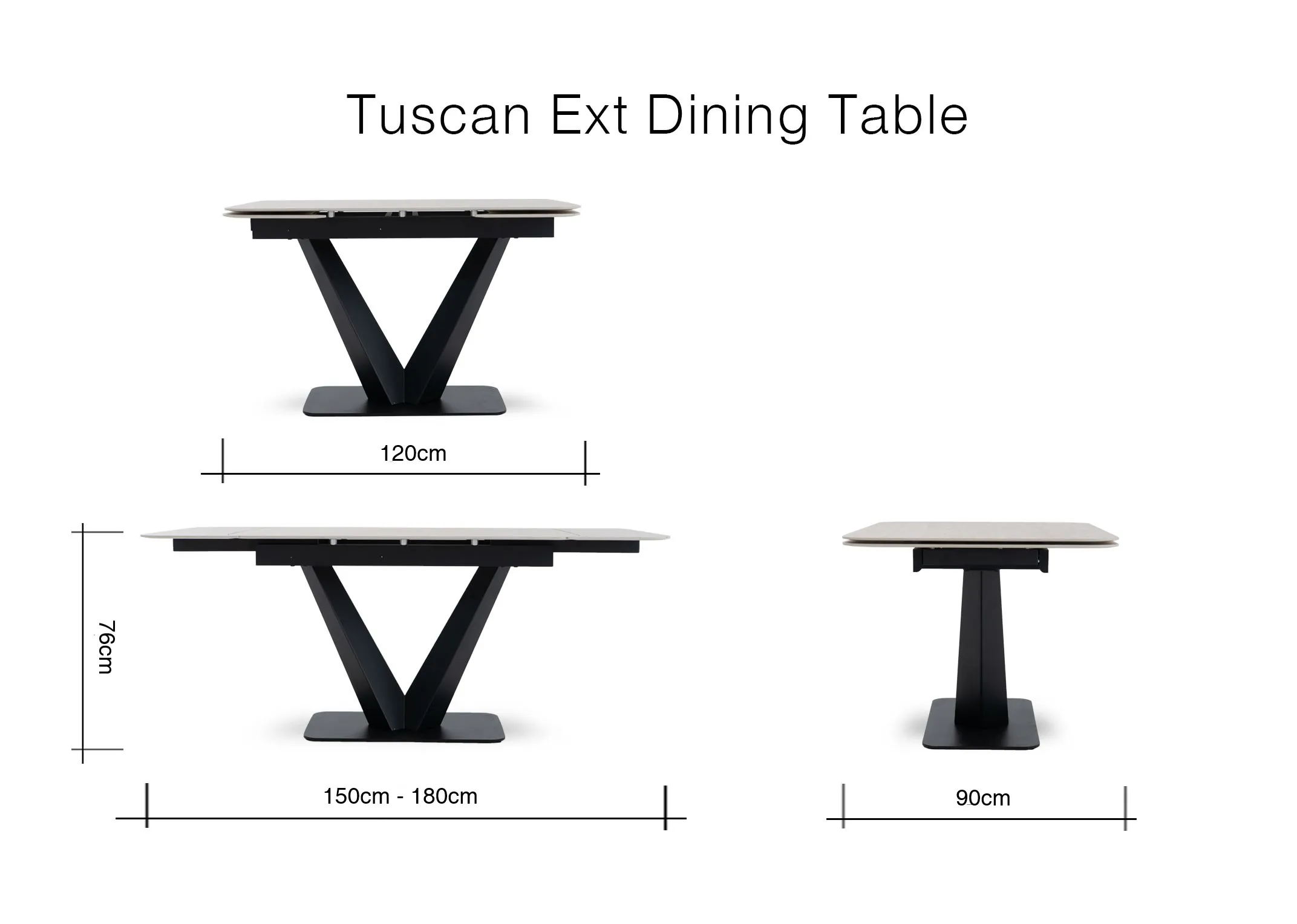 120cm-180cm Cream Ceramic Extendable Dining Table - Tuscan