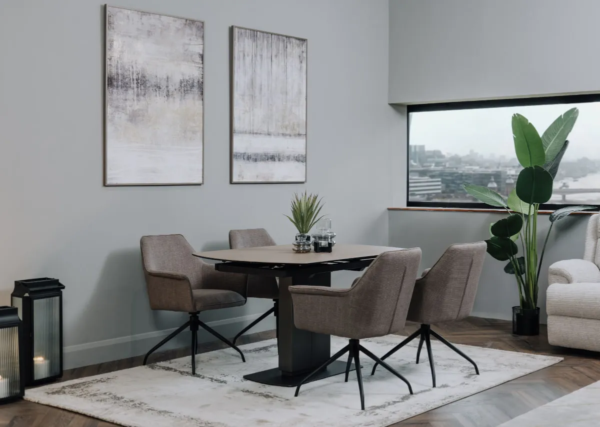 An elegant compact extendable dining table the Alor has a ceramic top and metal base ideal for a busy home.