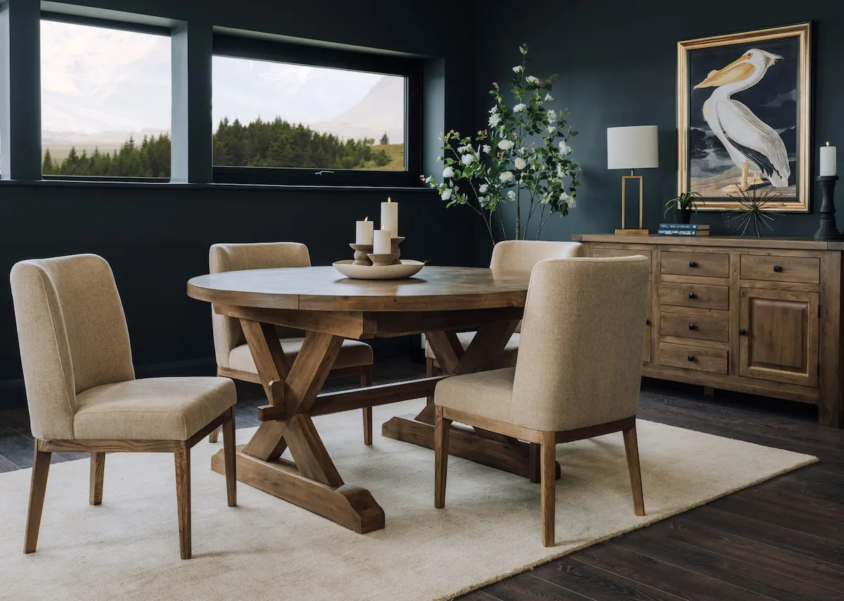 This rustic oak round table is perfect for smaller rooms but can extend easily, with lots of matching items available.