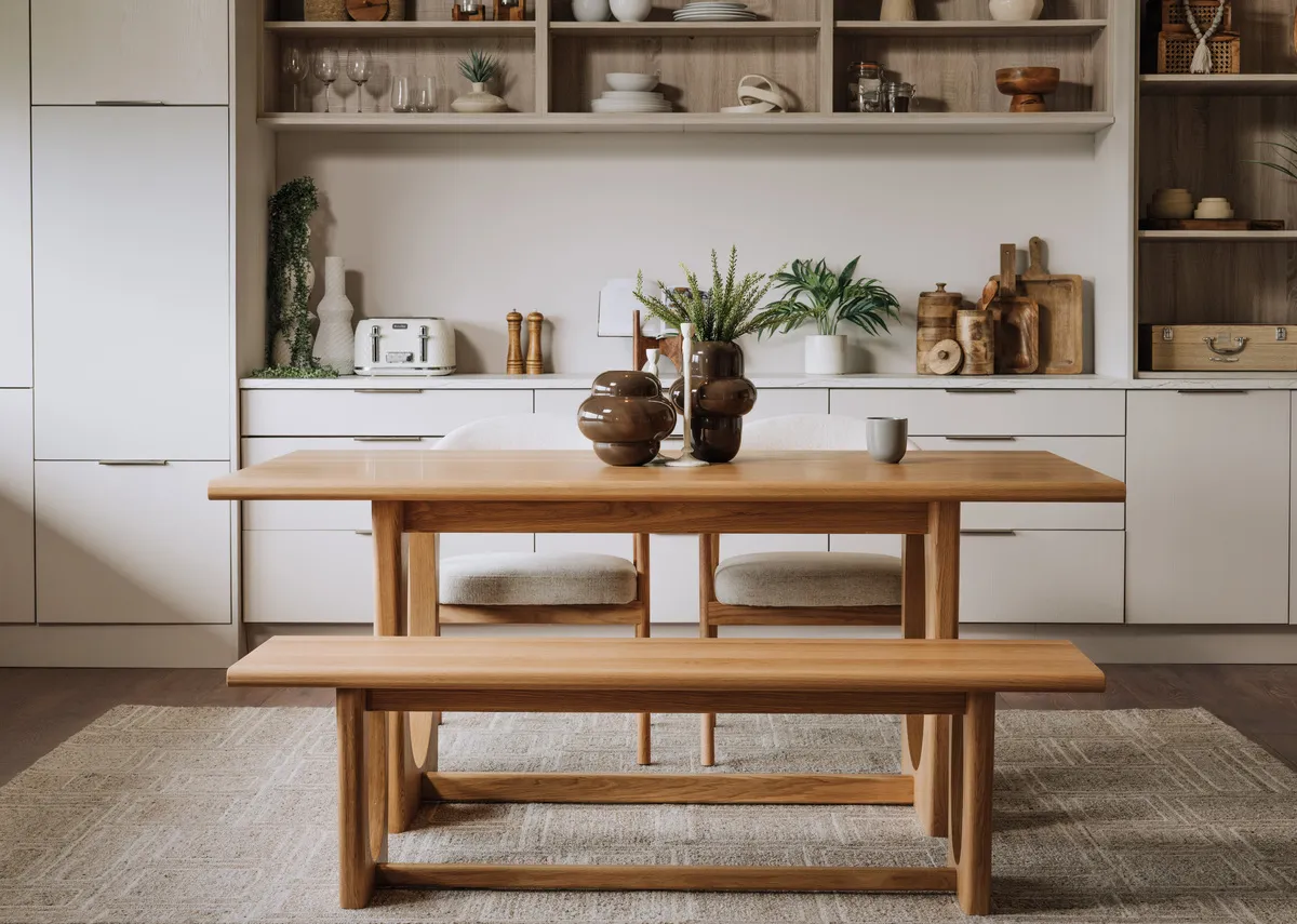 A simple oak dining bench, the Flow has many complimentary pieces including a table, sideboard and small tables.