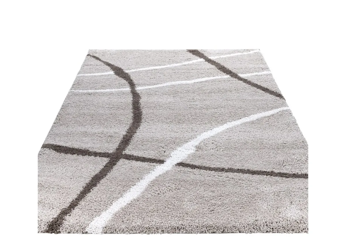 Contemporary in its design, the Gridlock Medium Taupe Rug boasts curved lines and warm neutral shades.
