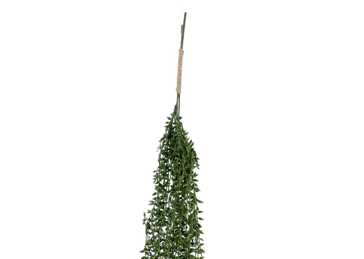 A simple piece of artificial succulent draped from a rope that can be hung anywhere in your home.
