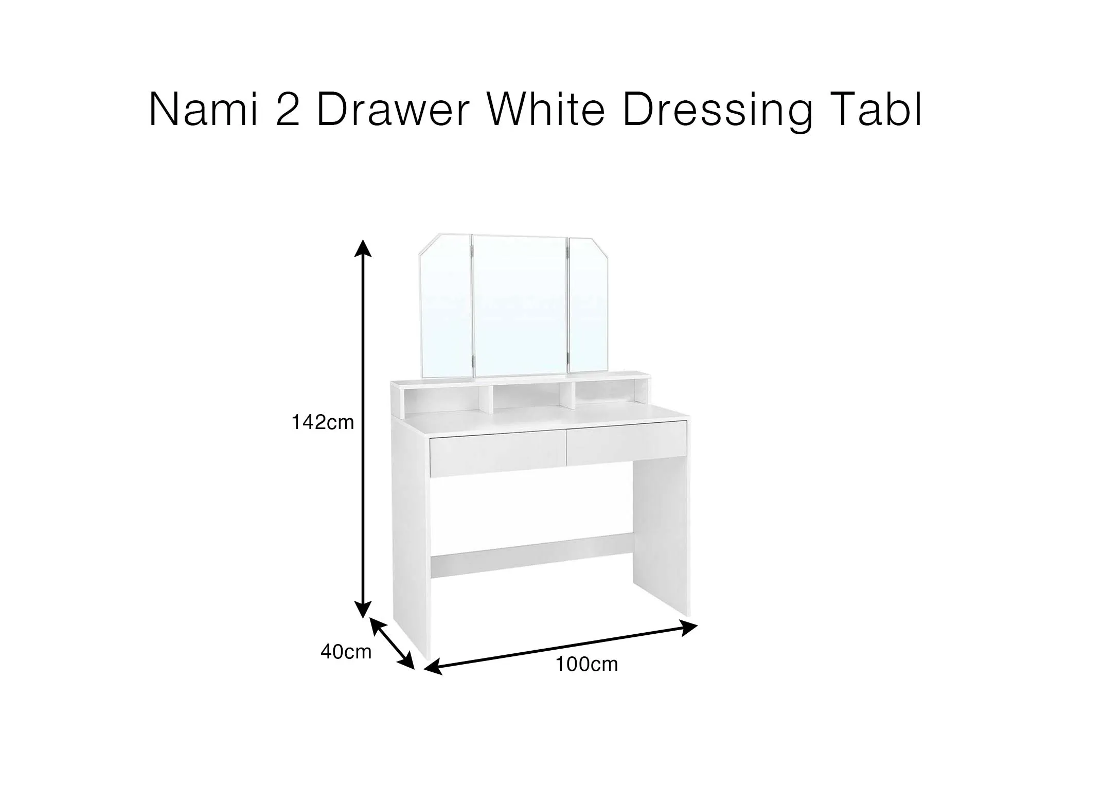 2 Drawer White Dressing Table with Tri Fold Mirror - Nami