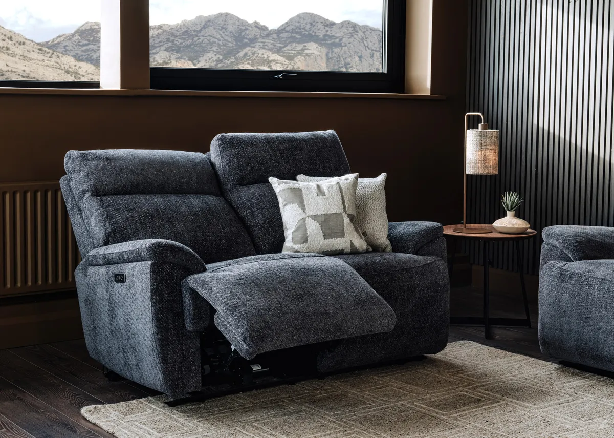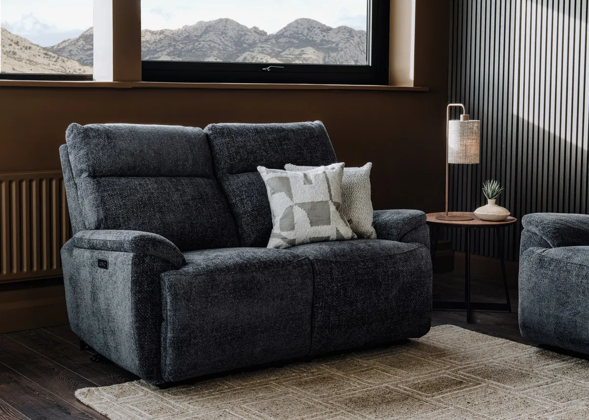 2 Seater Charcoal Fabric Power Reclining Sofa - Mallow
