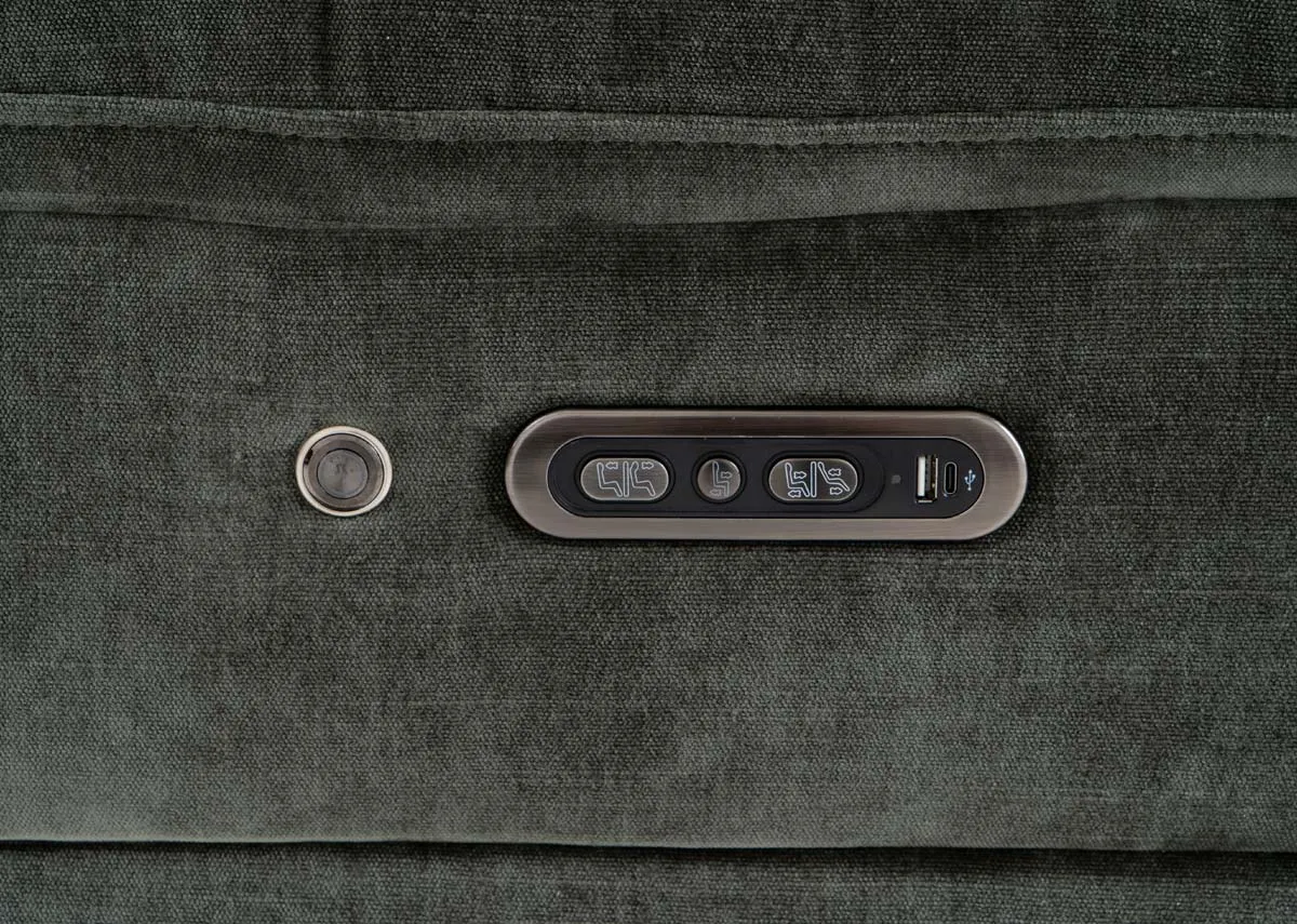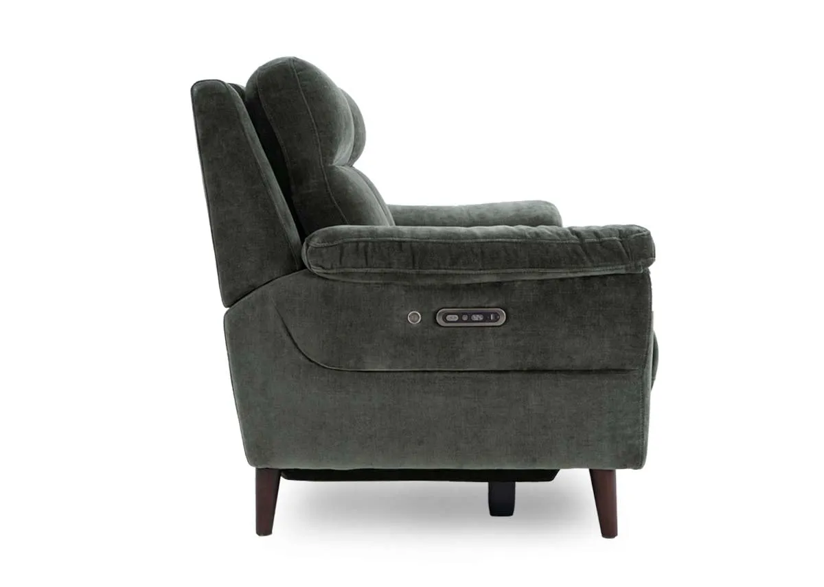 Contemporary in style but versatile in colour the Elliot Green Fabric Power Recliner is your perfect retreat for relaxation with heated seats.