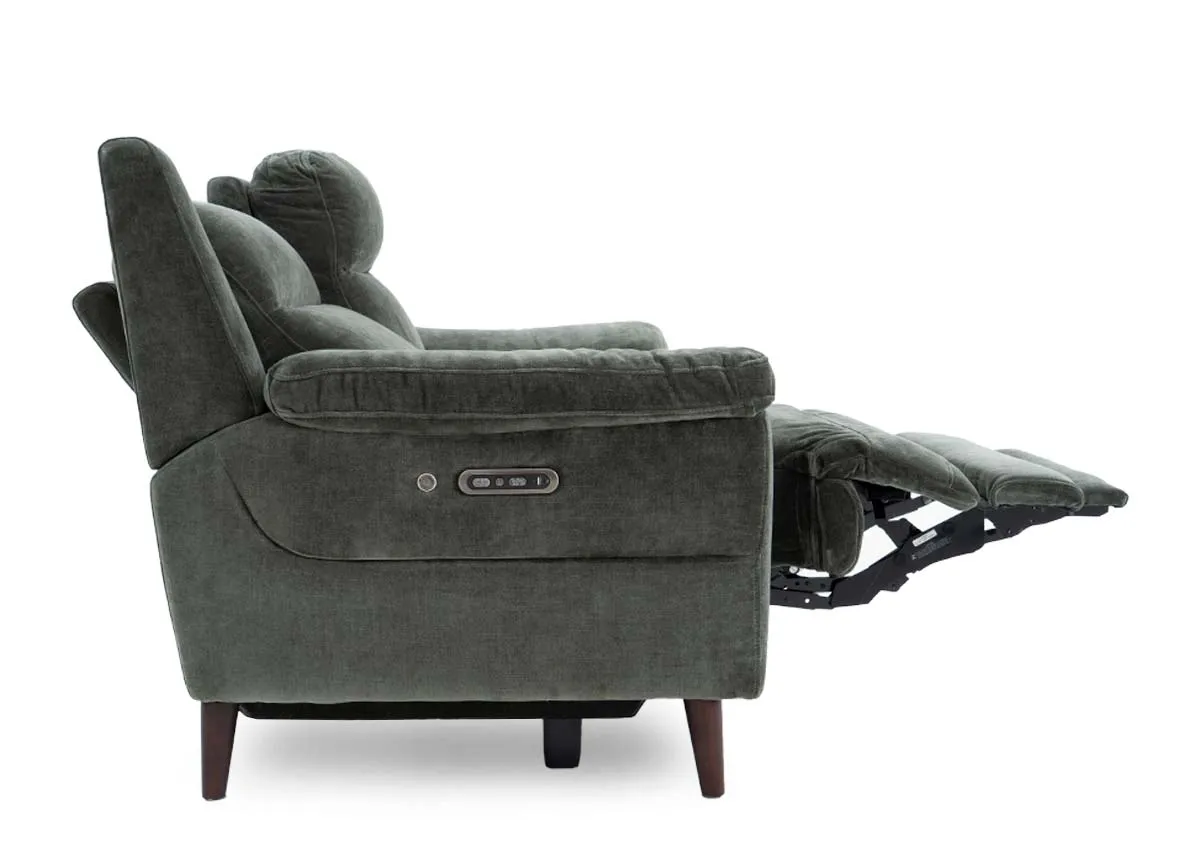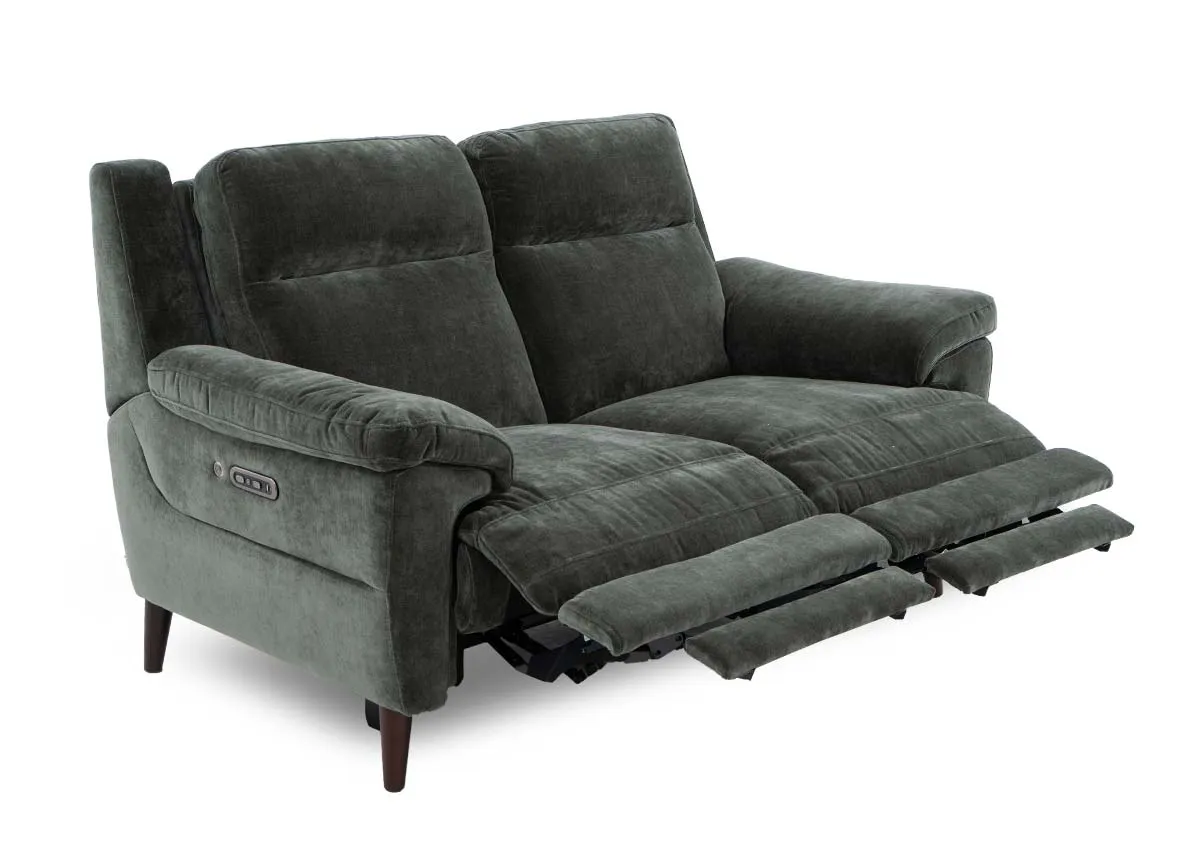 2 Seater Green Fabric Power Reclining Sofa - Elliot