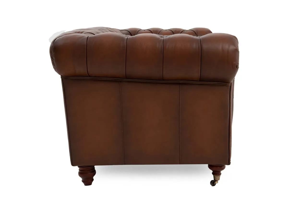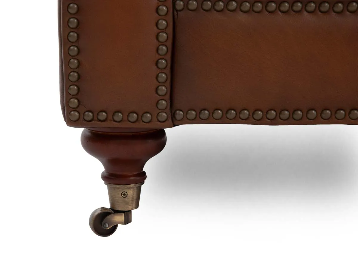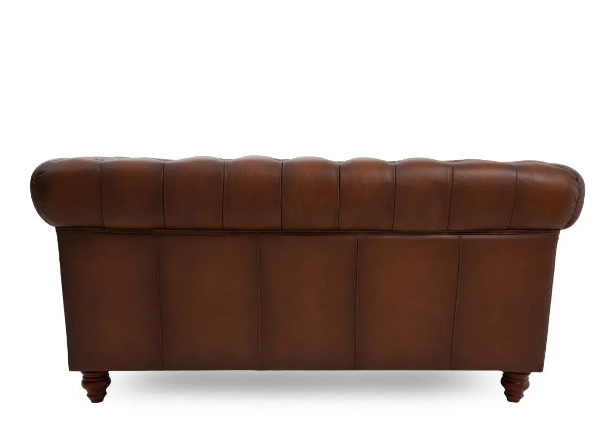 The Adare 2 seater sofa boasts a Chesterfield roll back and button detail inspiration, is upholstered in the richest cognac brown leather and boasts feather filled