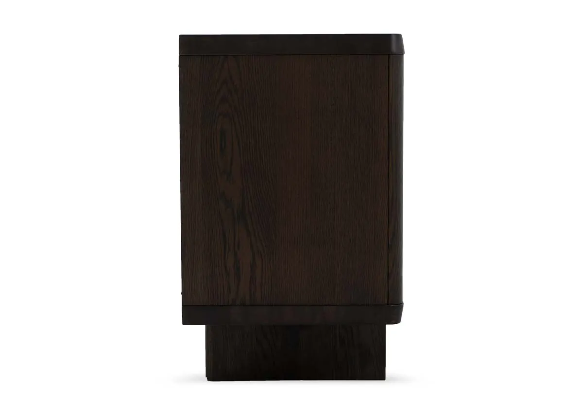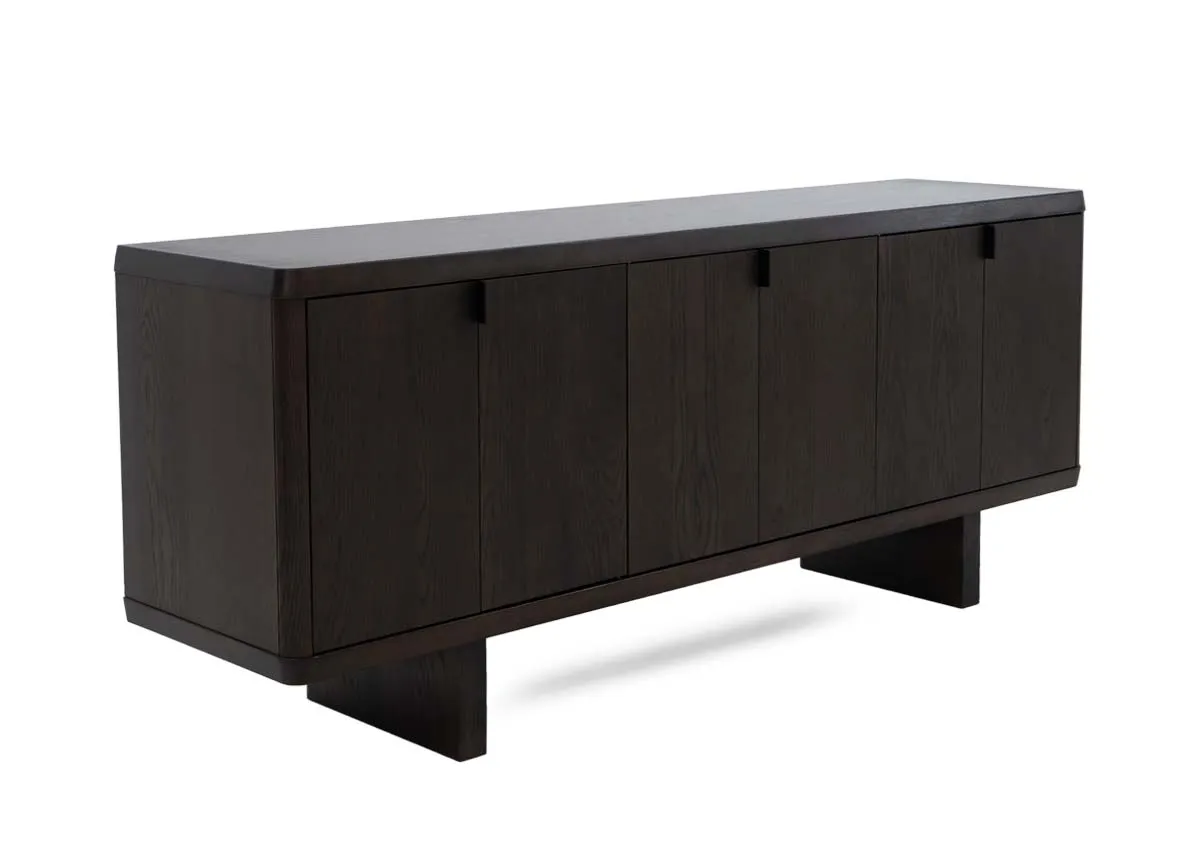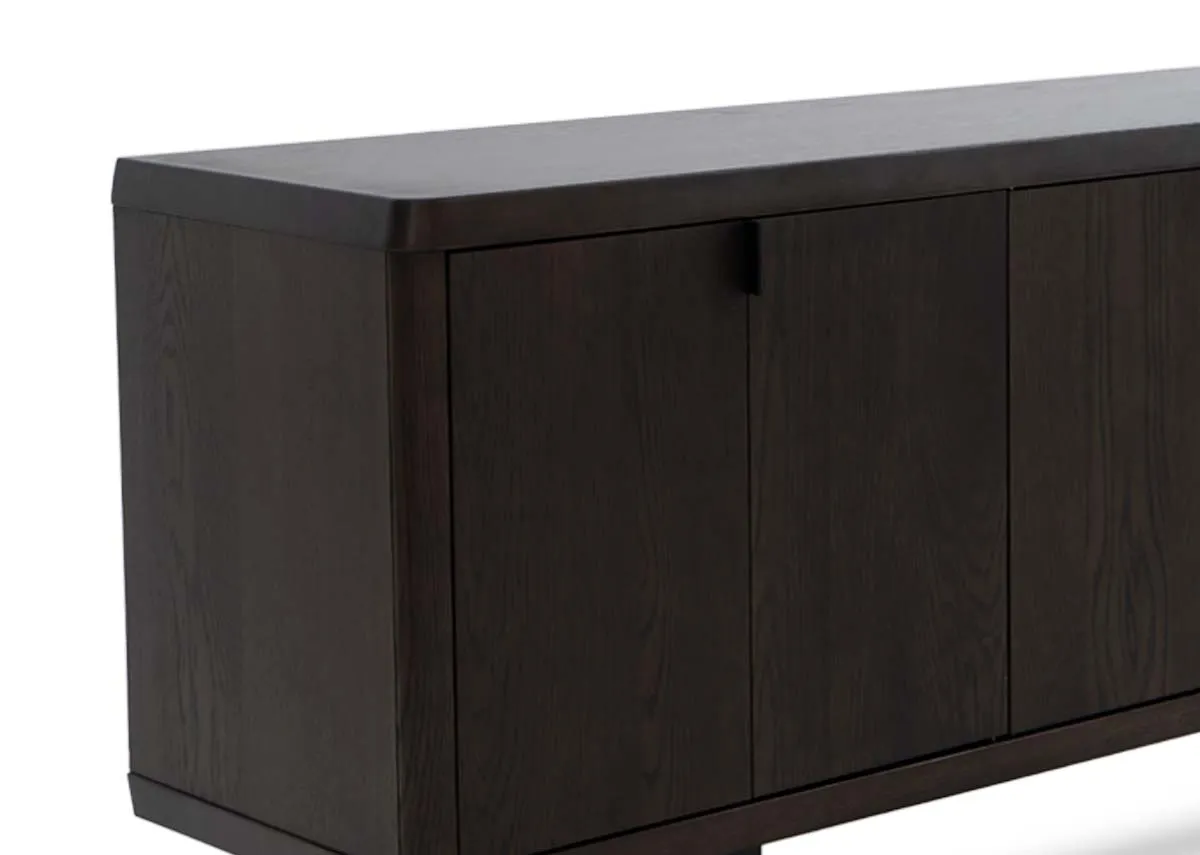 Striking and sleek in an espresso oak veneer finish, the Rimini sideboard has 3 doors and ample storage.
