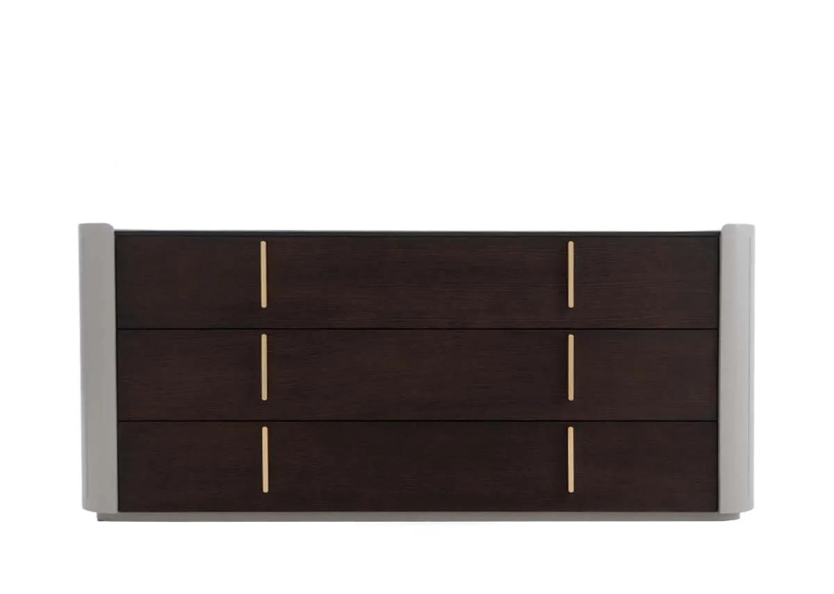 Elevate your bedroom with the sophisticated Canna 3-drawer dresser, blending ample storage with modern design and elegant gold accents.