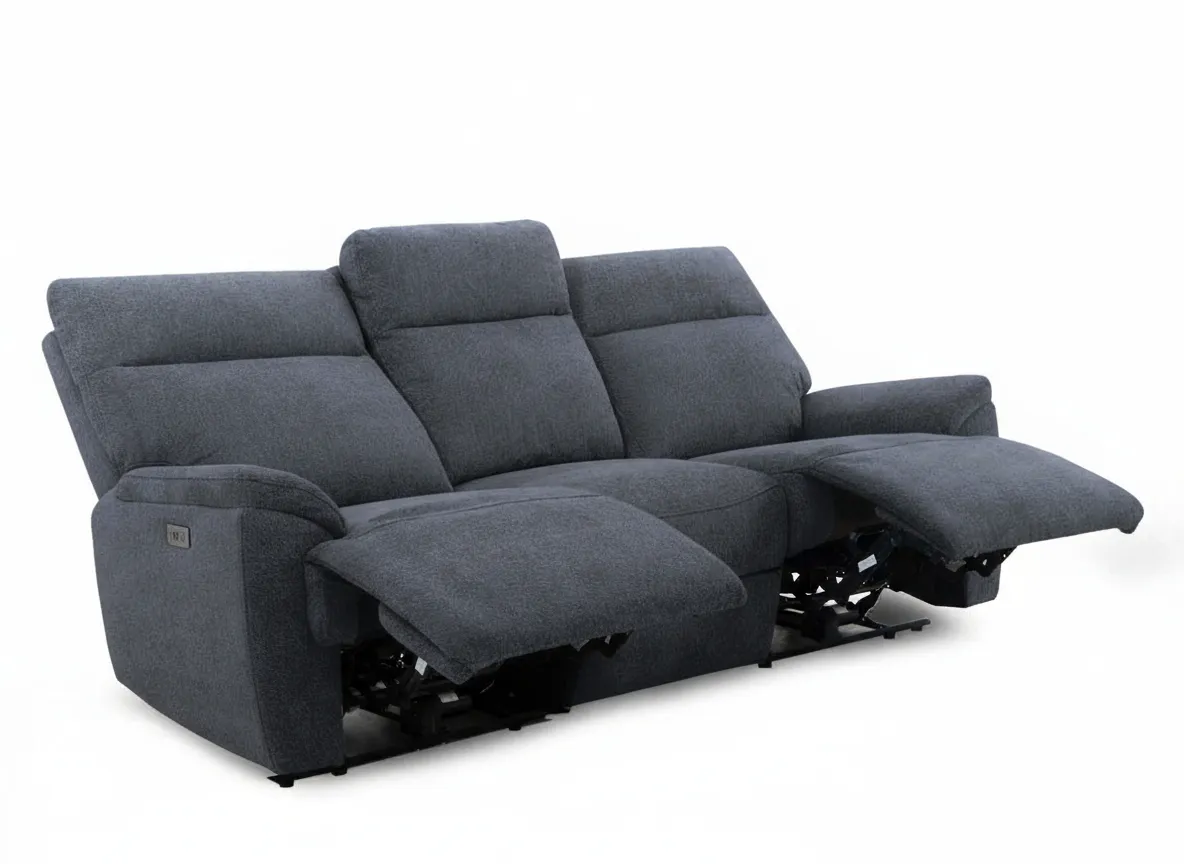 3 Seater Charcoal Fabric Power Reclining Sofa with Drinks Holder - Mallow