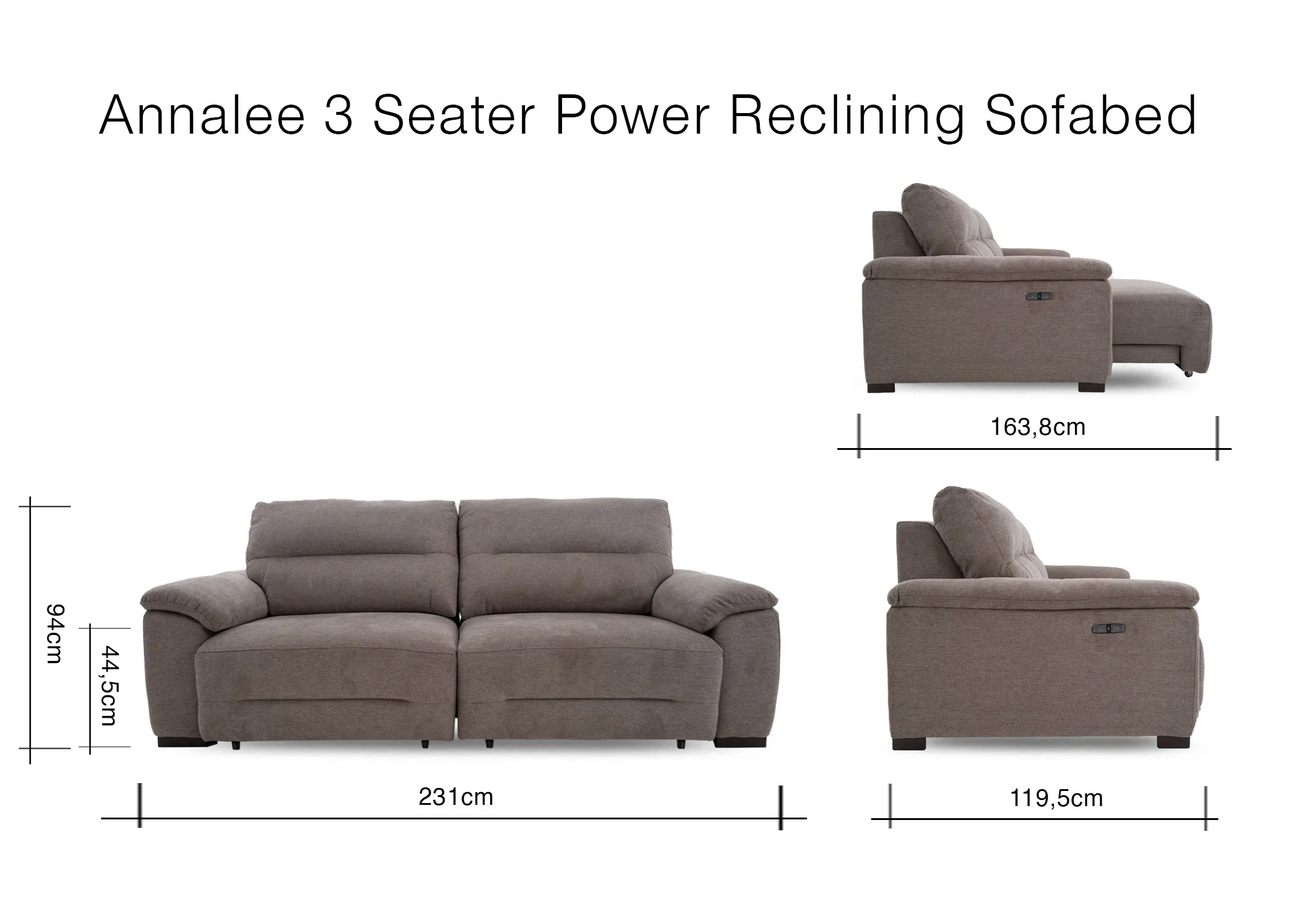119.5cm-164cm d x 231cm w x 94cm h