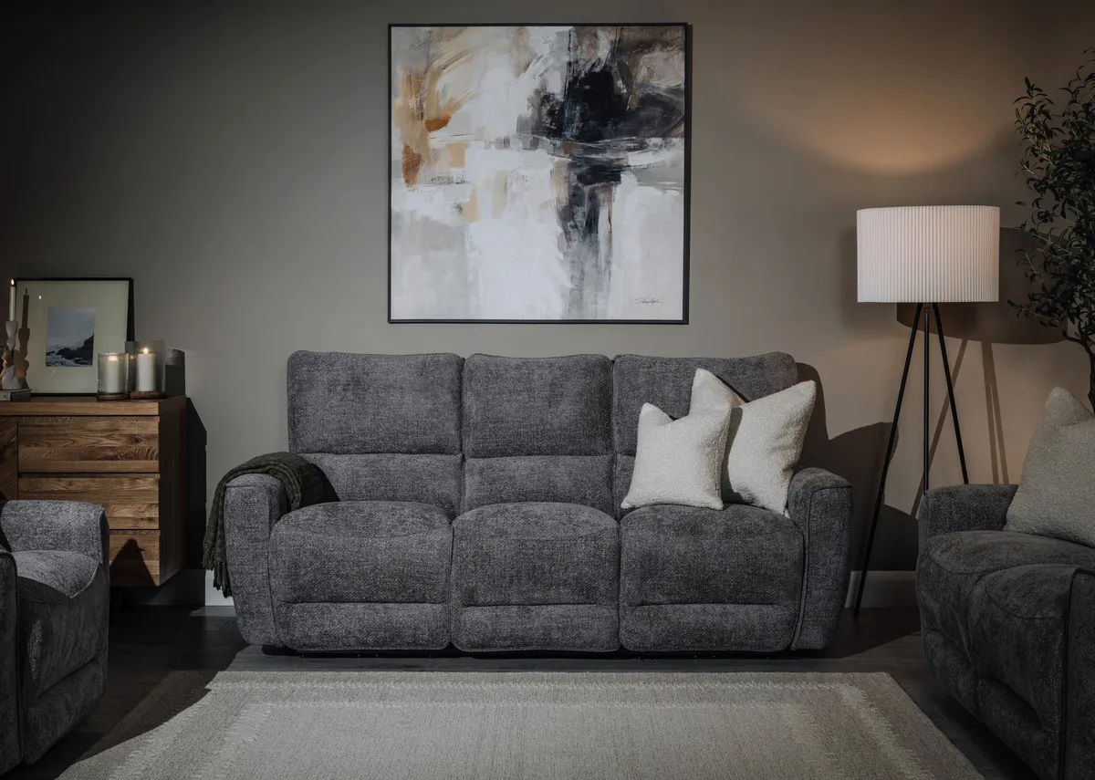 3 Seater Grey Fabric Power Reclining Sofa - Ashbrook