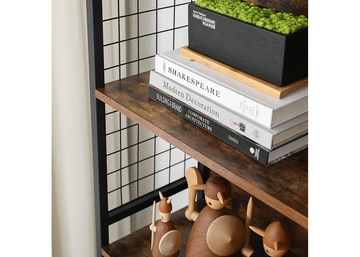 4 Shelf Rustic Brown Bookcase - Gridline