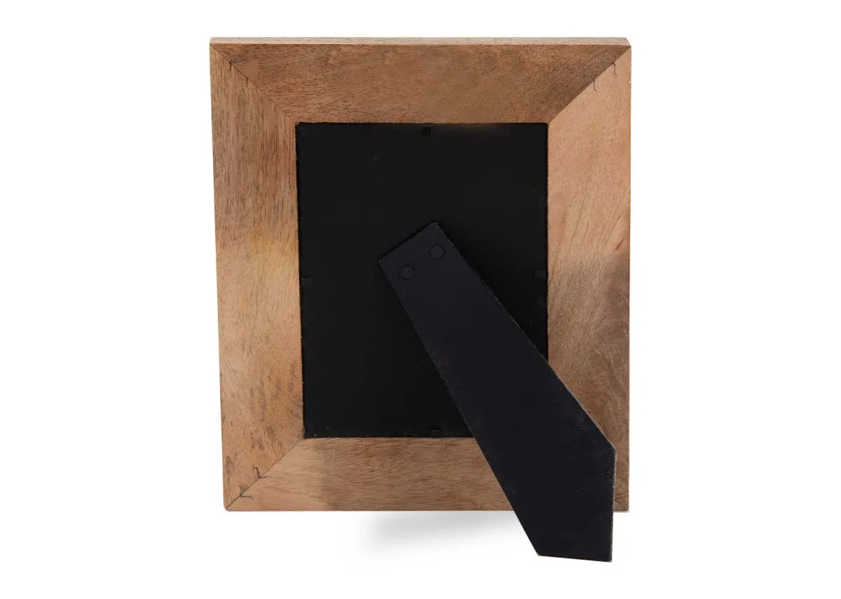 A traditional rectangular 5" x 7" photo frame made from a natural wood.