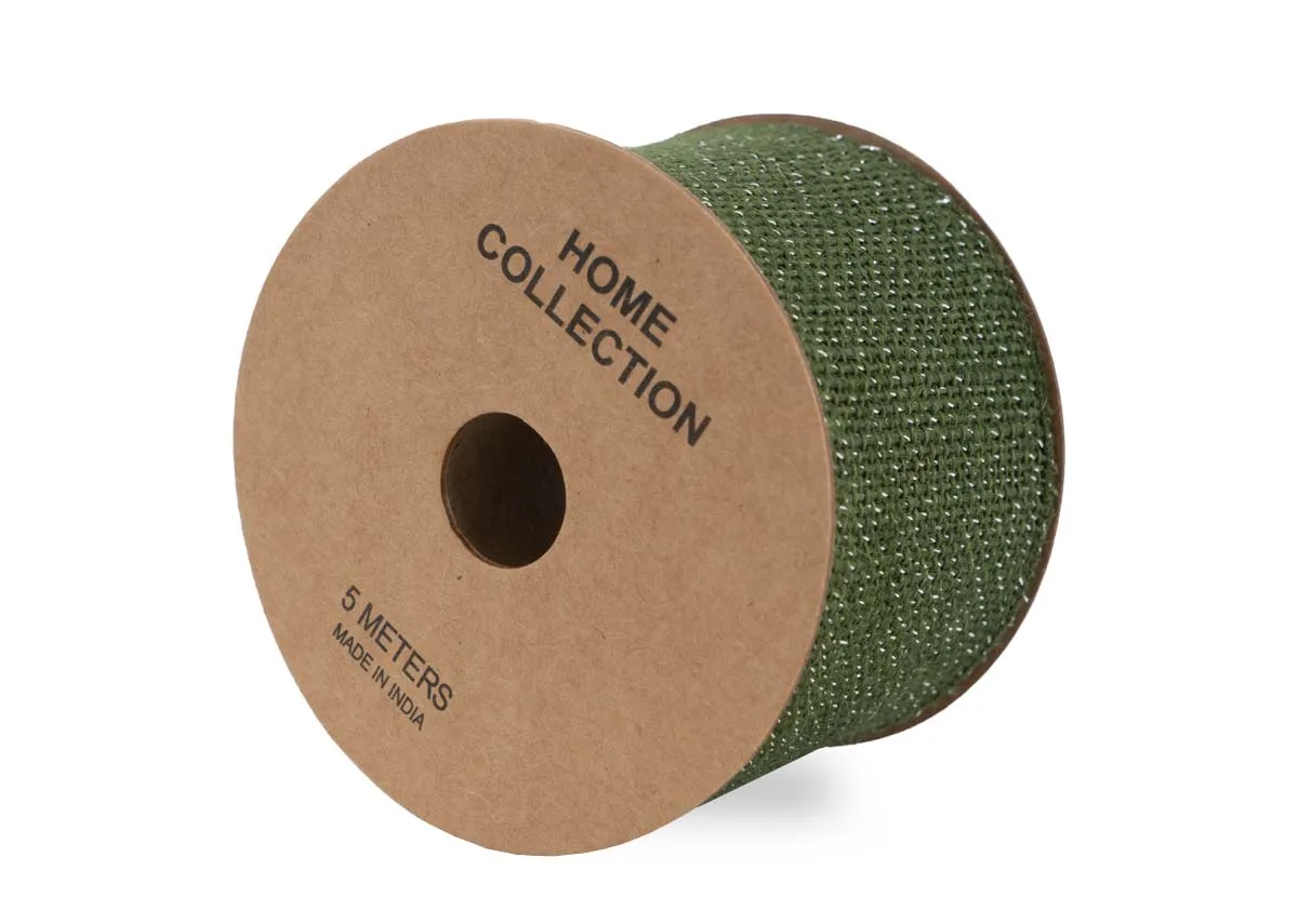 5M Vintage Green Glitter Ribbon Roll - Christmas Decoration