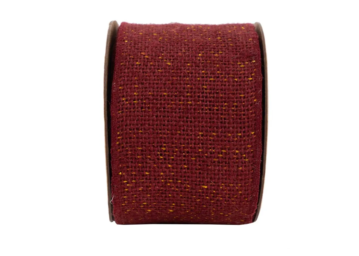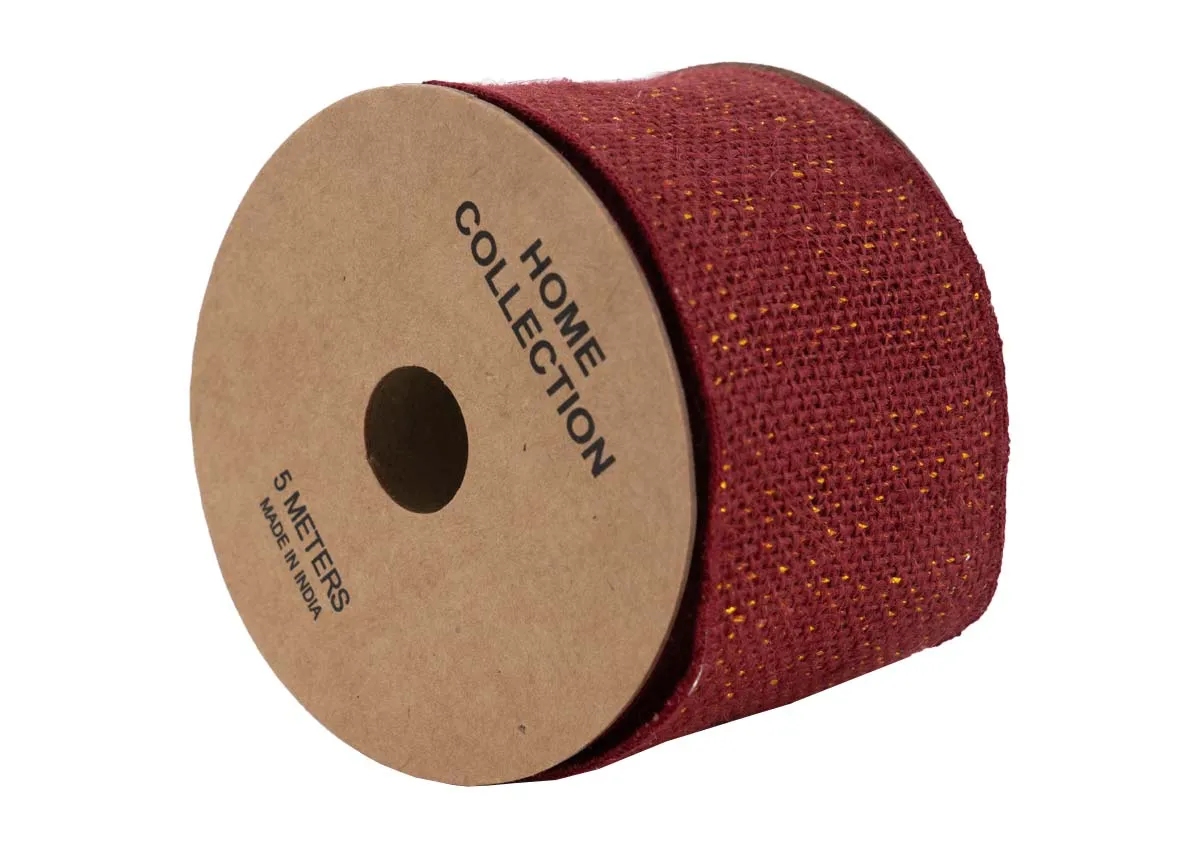 5M Vintage Red Glitter Ribbon Roll - Christmas Decoration