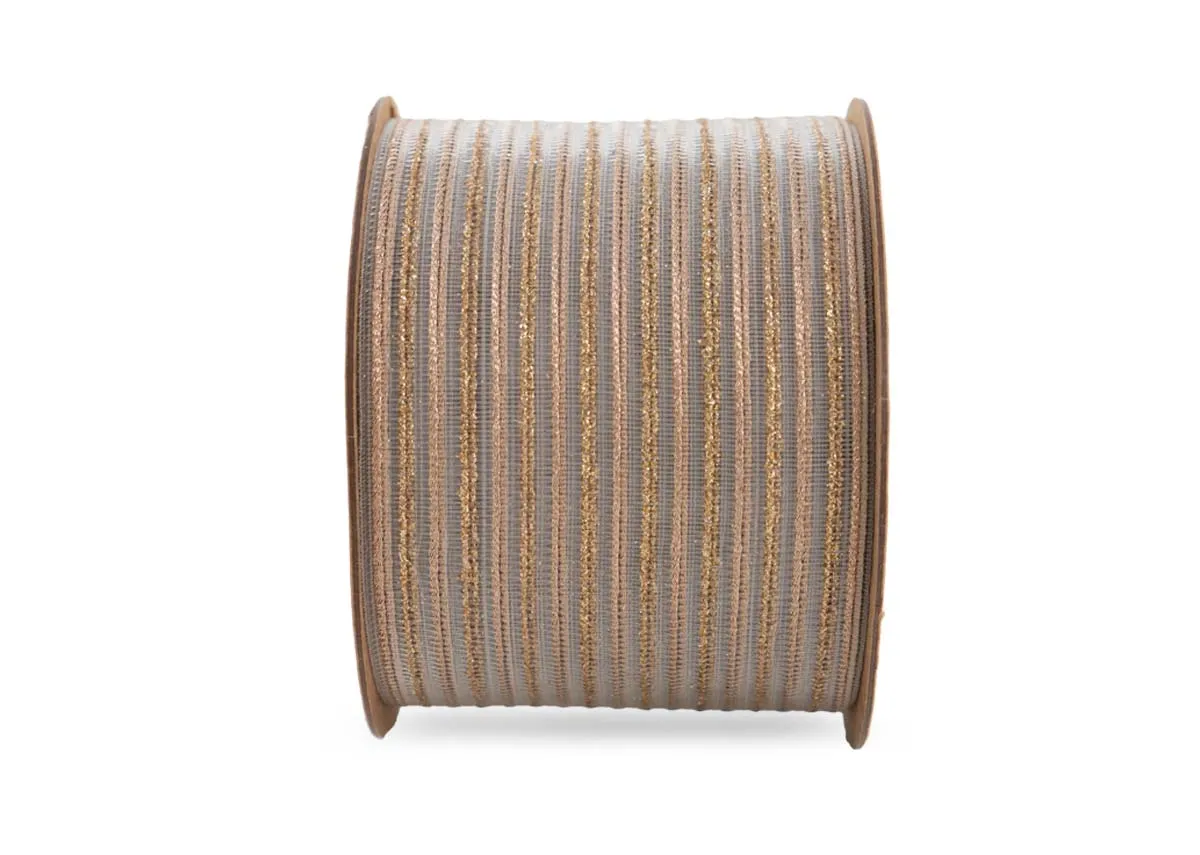 Add a touch of vintage elegance and festive sparkle to your holiday creations with this beautiful gold stripe ribbon.