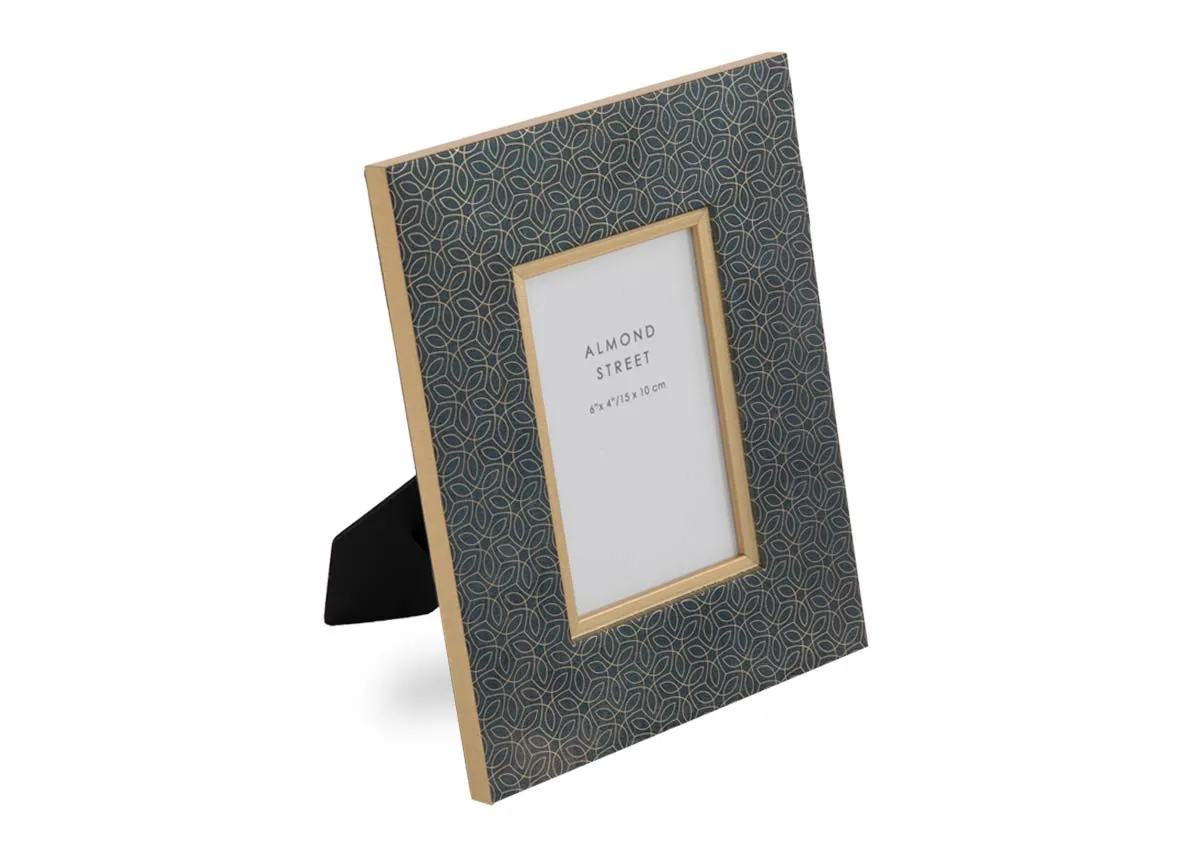Elevate your cherished memories with the Falmouth photo frame, featuring a striking teal and gold geometric pattern for an instant touch of elegance.