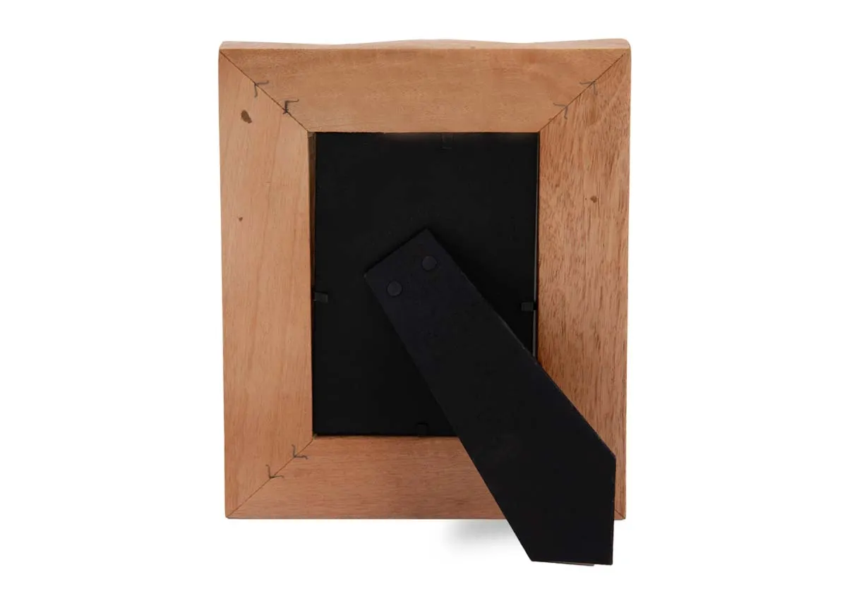 A natural wood photo frame to fit a 6" x 4" photo with bevelled edges.