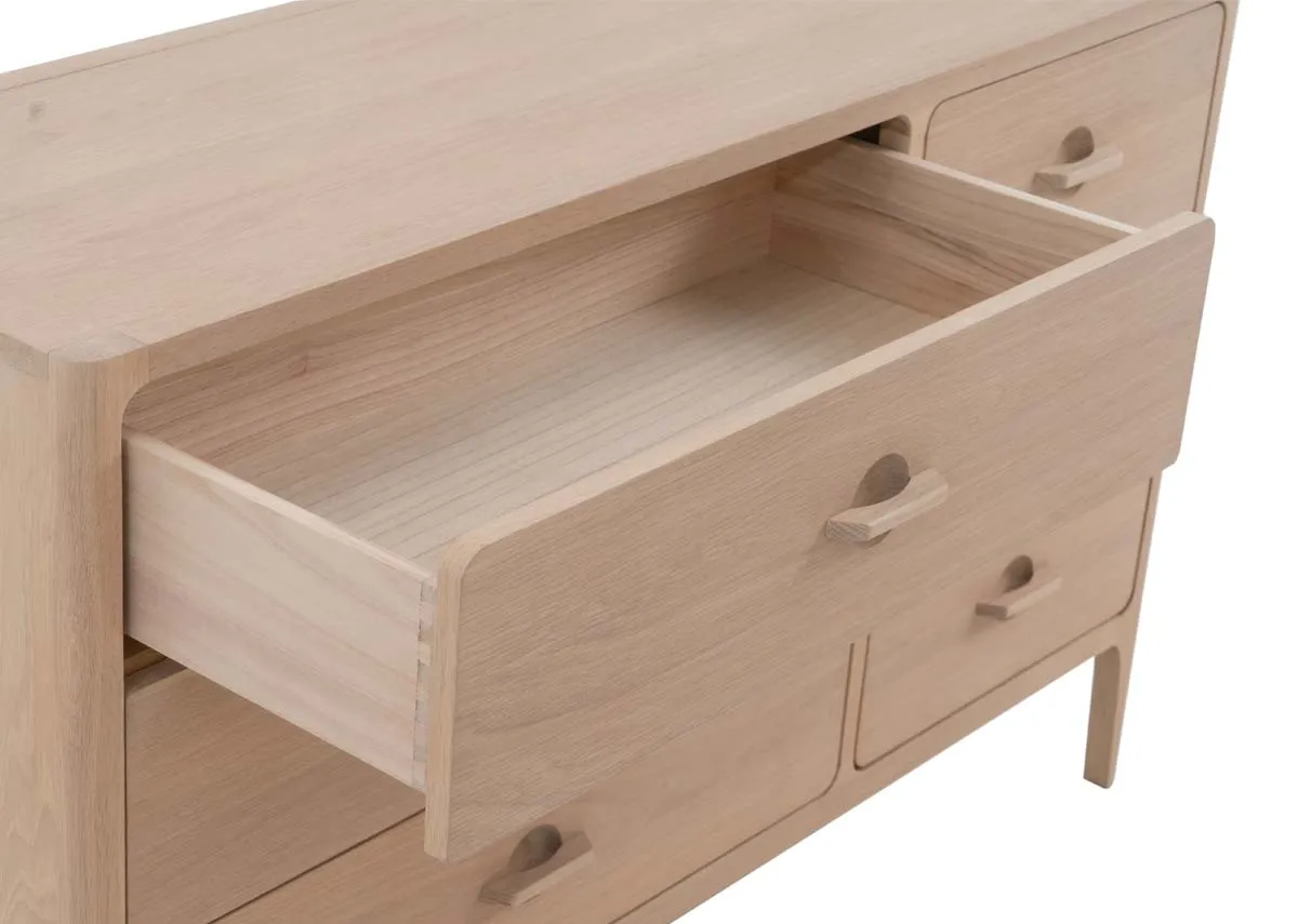 Discover timeless style and expansive storage with the Jay 6 Drawer White Oak Dresser, a beautiful addition designed to enhance any bedroom.