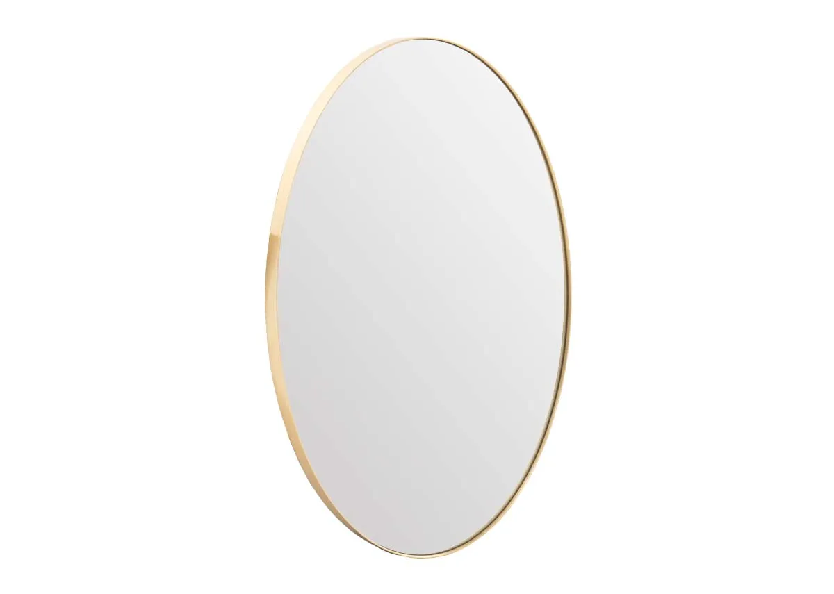 An oval mirror with a simple gold trim frame, simple, elegnat and understated and suitable for every room in your home.