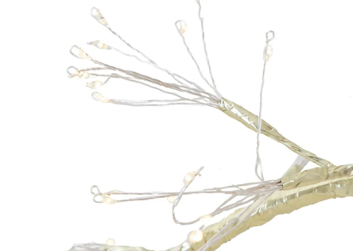A gold-wrapped hanging wreath with LED lights, perfect for that traditional touch to your Christmas decor.