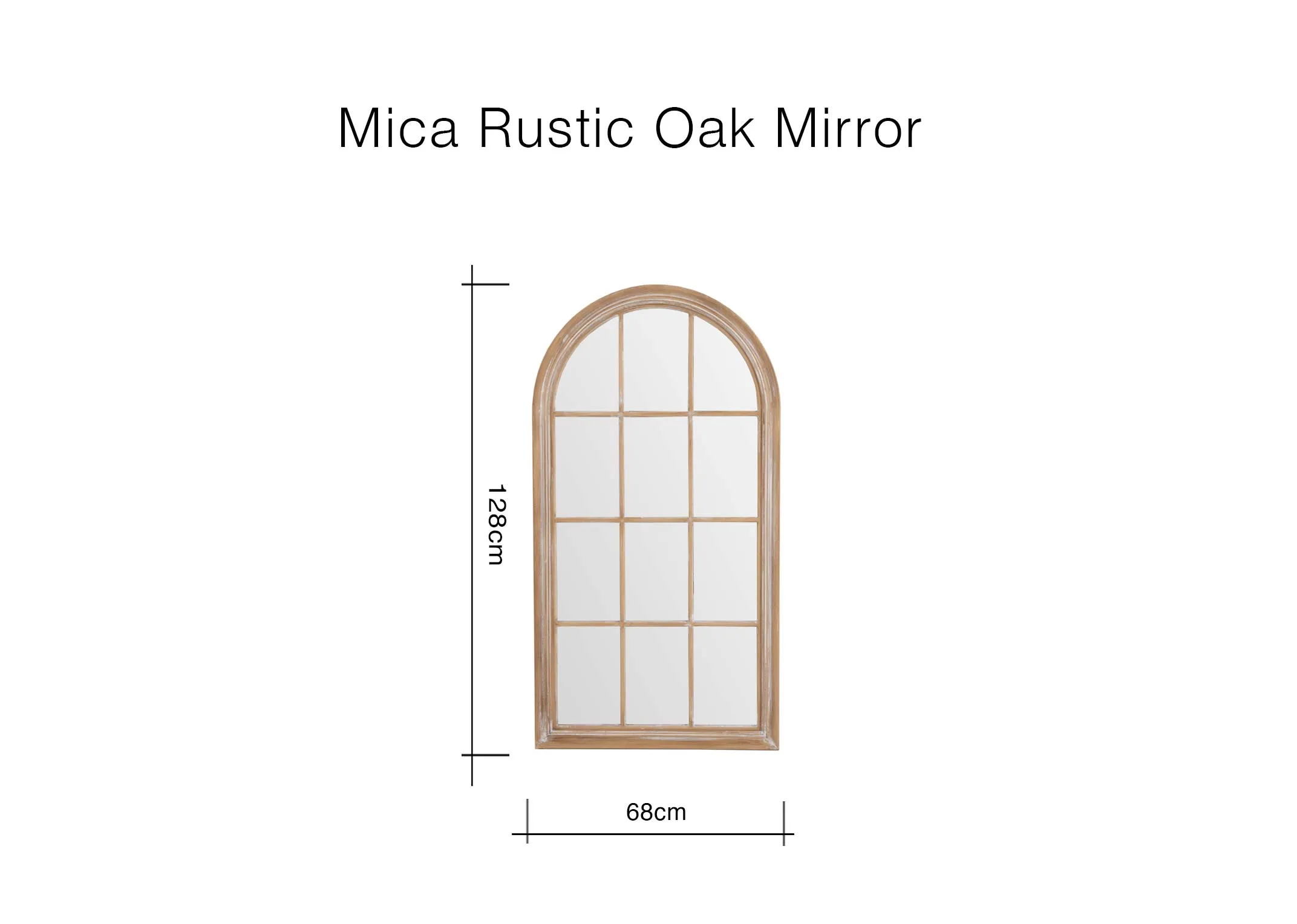 68cm x 128cm Rustic Oak Arch Mirror - Mica