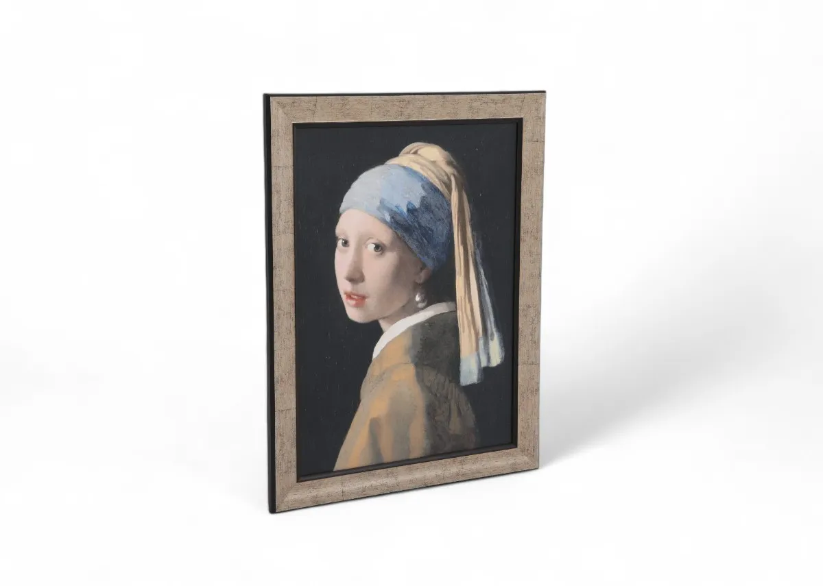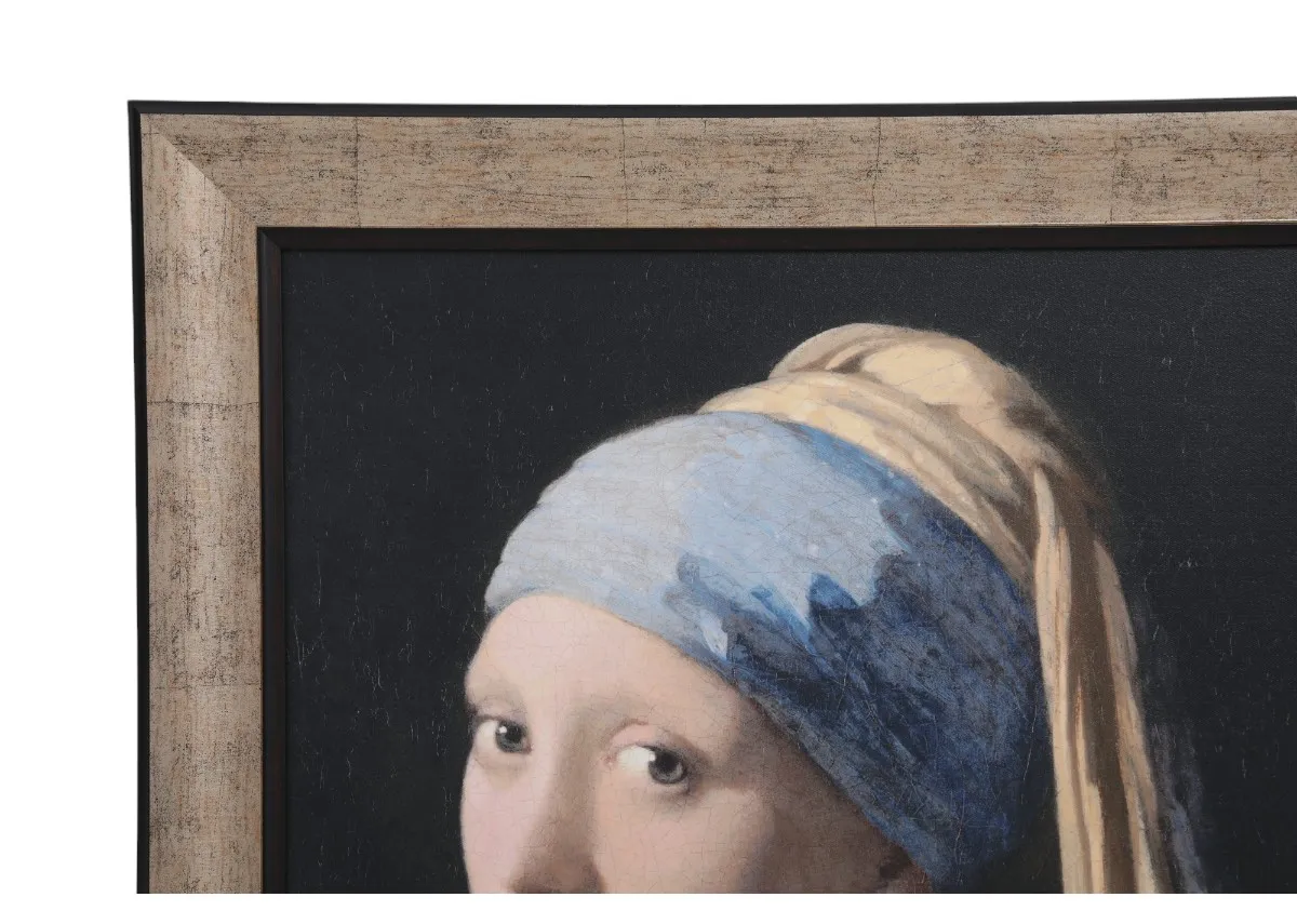 A print of the renowned Girl with a Pearl Earring female portrait with muse strking an over the shoukder glance wearing a head scarf.