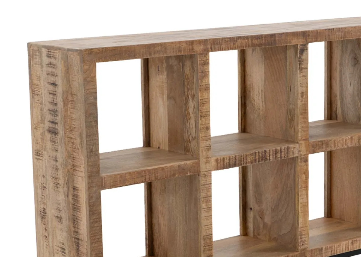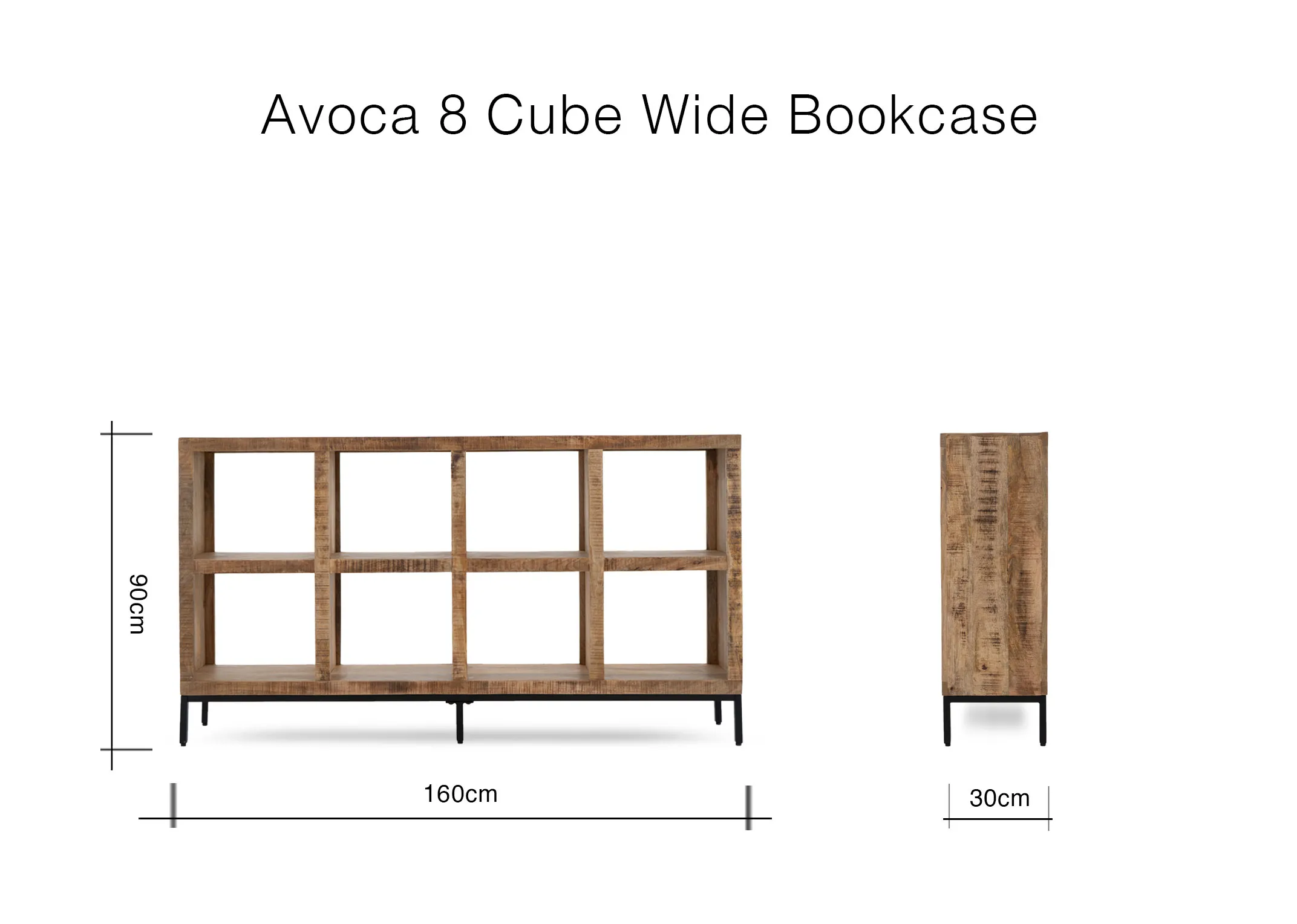 Stylish and simple the Avoca wide bookcase boasts 8 cube shelves for display and storage, its versatile in mango and striking in texture.
