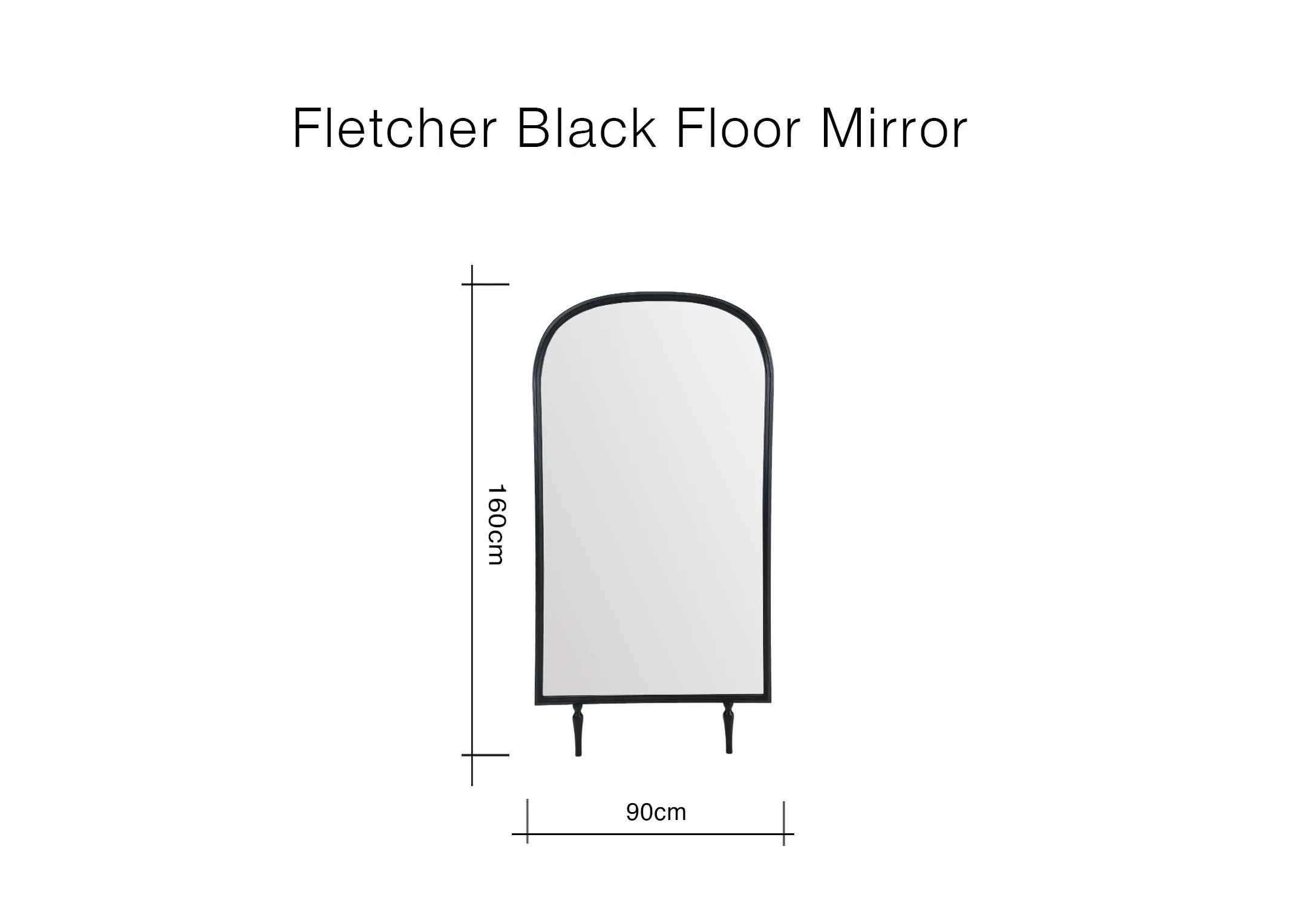 90cm x 160cm Black Full Length Arch Mirror - Fletcher
