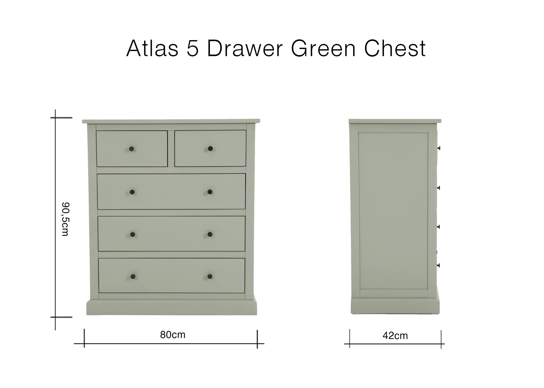 Atlas 5 Drawer Light Green Chest (Ashbourne Floor Model)