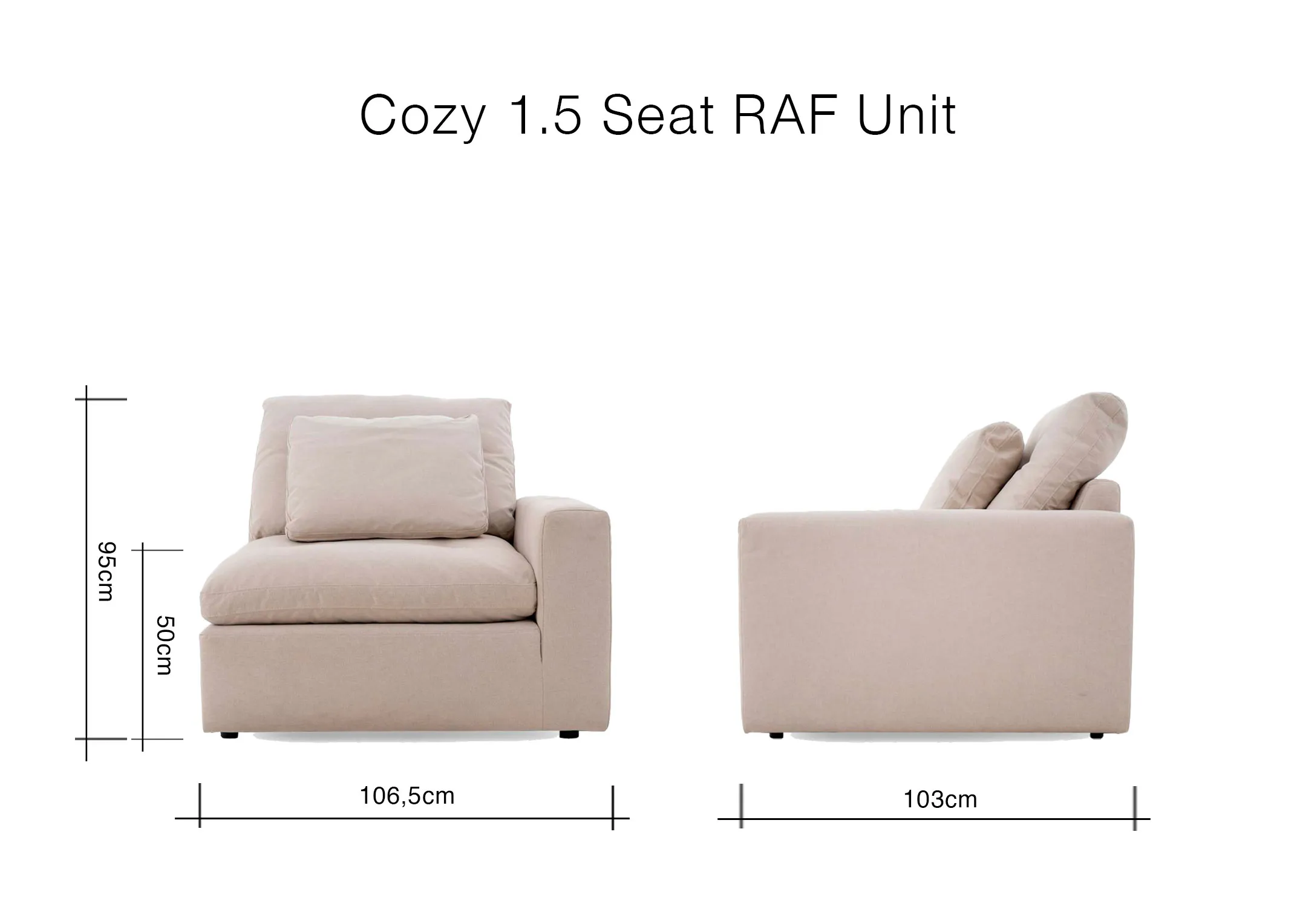 Beige Easy Clean Fabric 1.5 Arm RAF Unit - Cozy