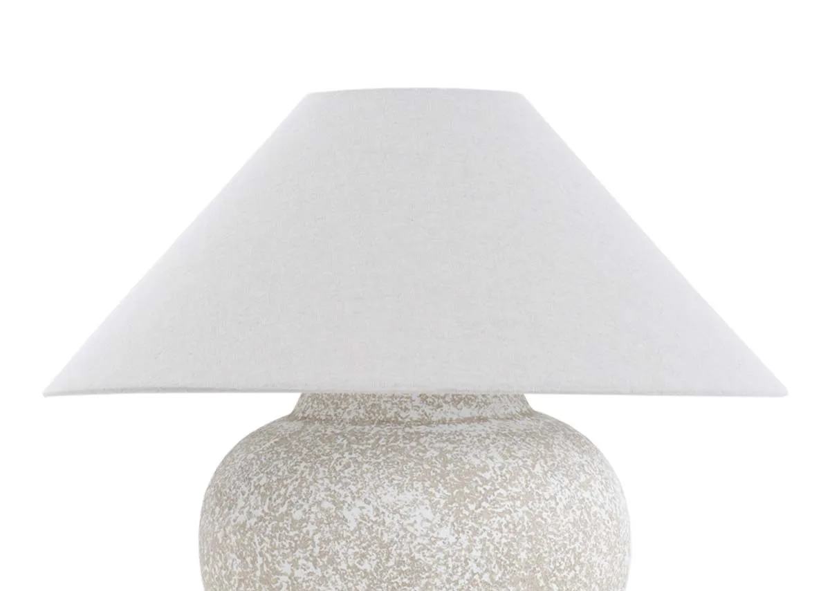 A stunning table lamp from the Pottery colletion the Moyola boasts a ceramic grey base with concrete effect detail & neutral white shade.
