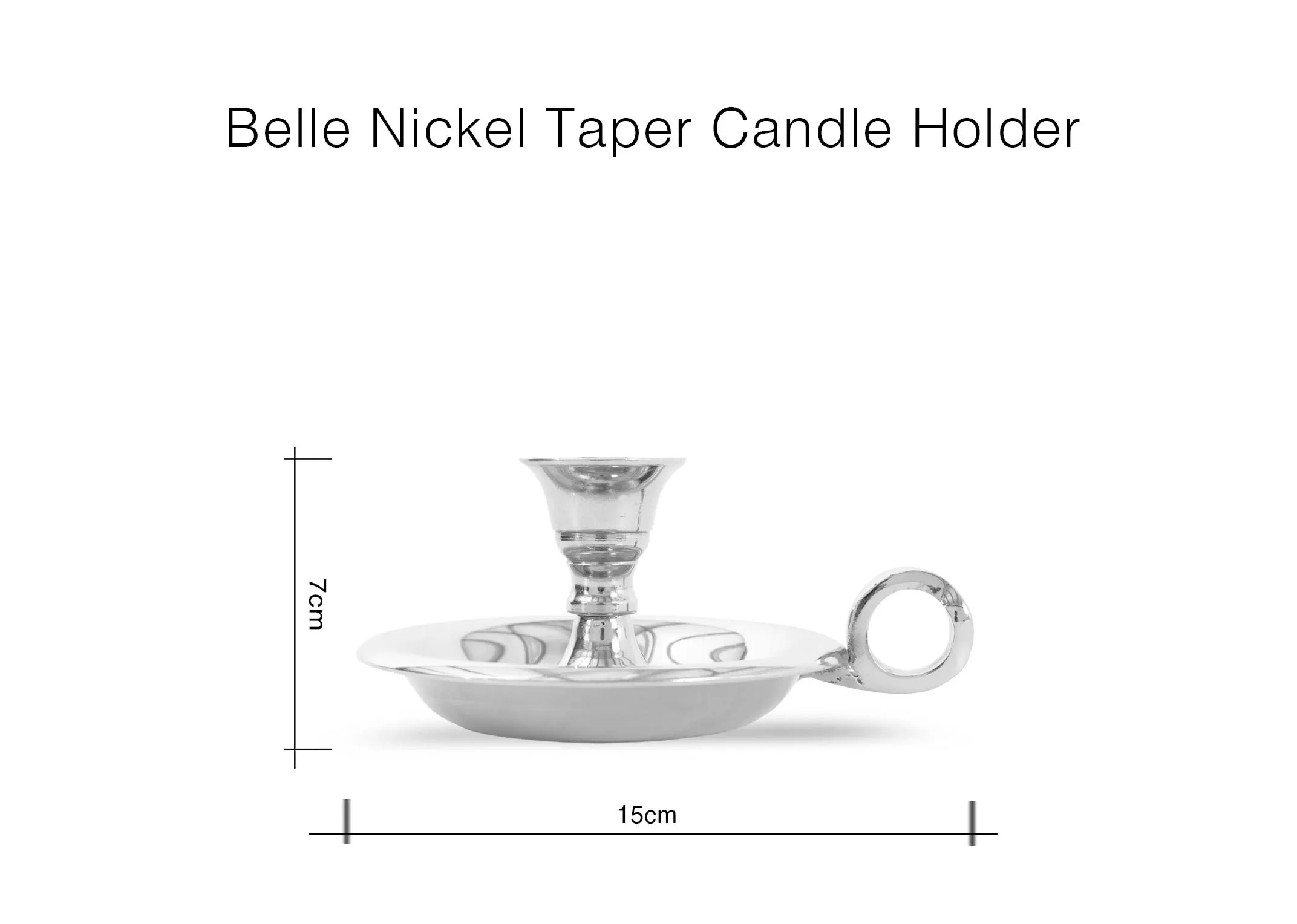 The Belle Taper Candle Holder is a must-have with its vintage-inspired shape and versatile nickel finish.