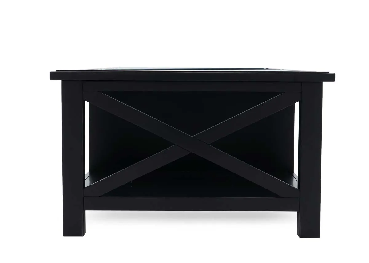 Made from pine with a painted black sleek finish, the Hampton coffee table has a glass top to protect the surface which is easy to clean up any spills, with ample storage underneath.