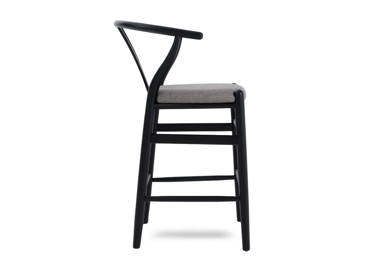 Black Counter Bar Stool with Grey Seat - Wishbone