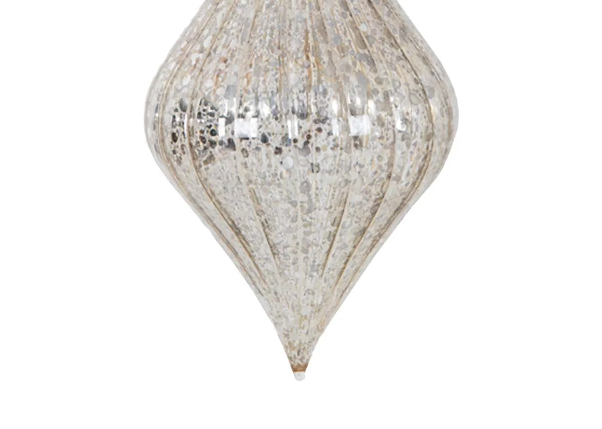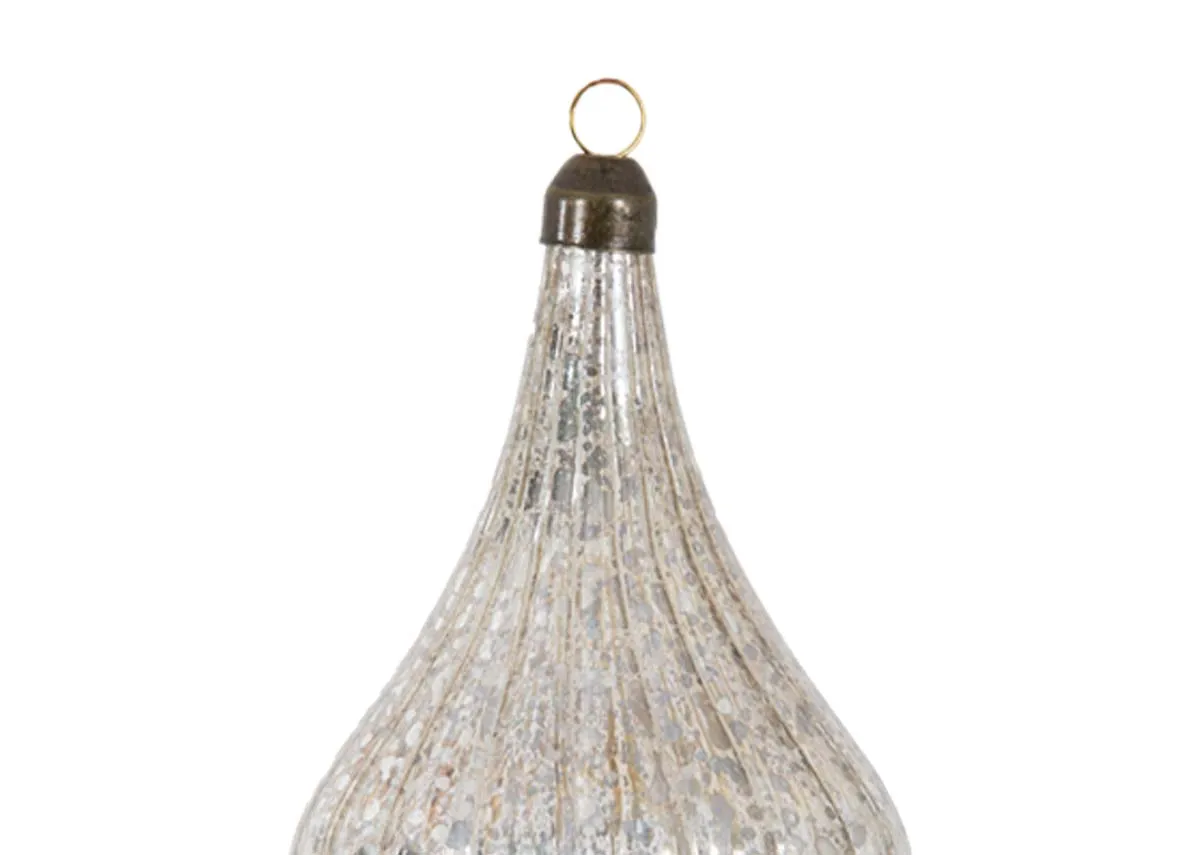 A set of four elegant silver glass drop baubles with vintage cap and art deco vibes.