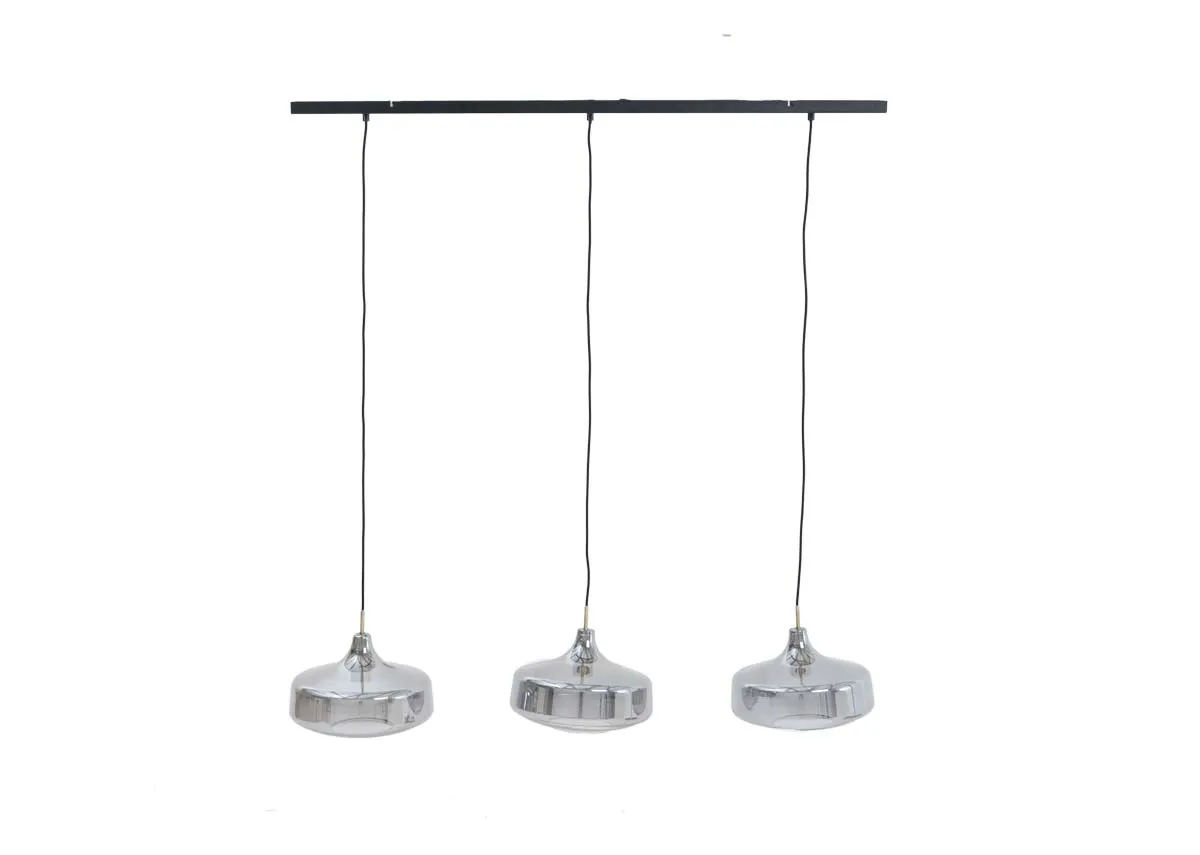 Illuminate your space with the sleek design of the Camila triple pendant lamp, featuring sophisticated smoked glass shades for a contemporary glow.