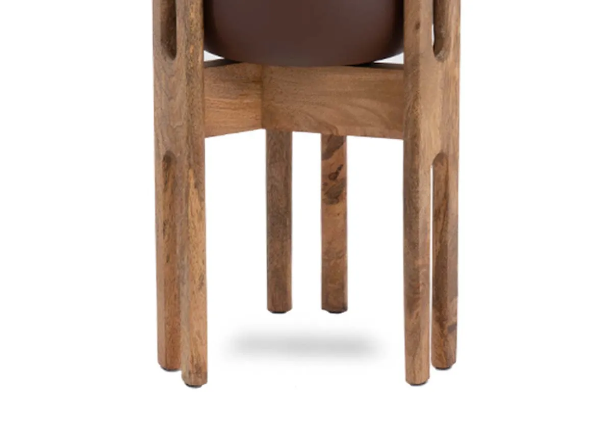 Elevate your home's greenery with the stylish Tearose Natural Planter with a rich brown pot set in a natural wood stand.