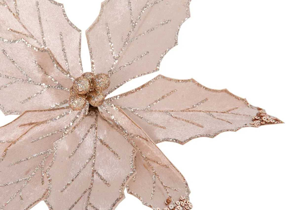 The Champagne Gold Flower edges are tipped with gold glitter to bring a little sparkle to your Christmas tree wreath or centrepiece.