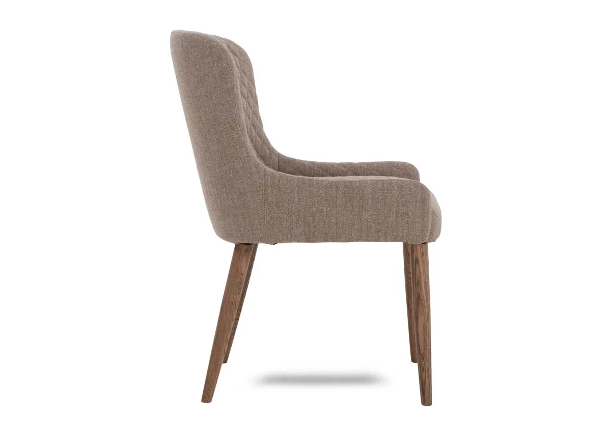 Opt for incredibly comfortable seating at the dining table with an Oslo chair in a coffee fabric upholstery and a quilted design