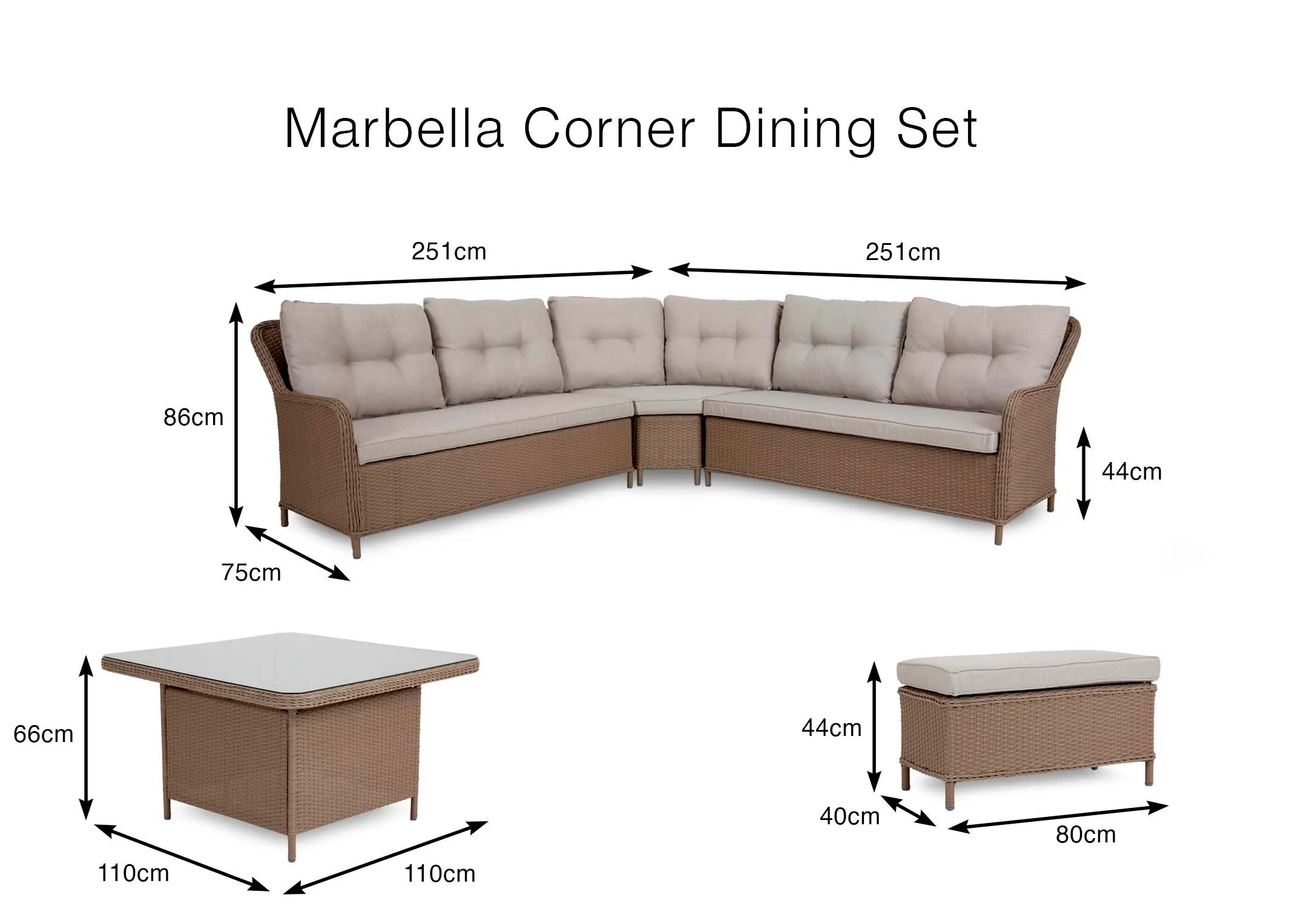 Dine Al fresco in ultimate style and comfort with the large Marbella Corner Garden Set.