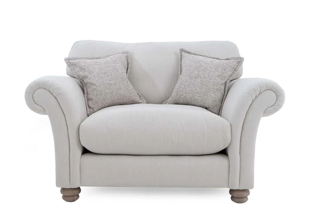 Cloud-like and squishy, with a soft sit that invites you to sink in the Paloma cuddler is sure to be comfy while neutral fabric makes styling easy.
