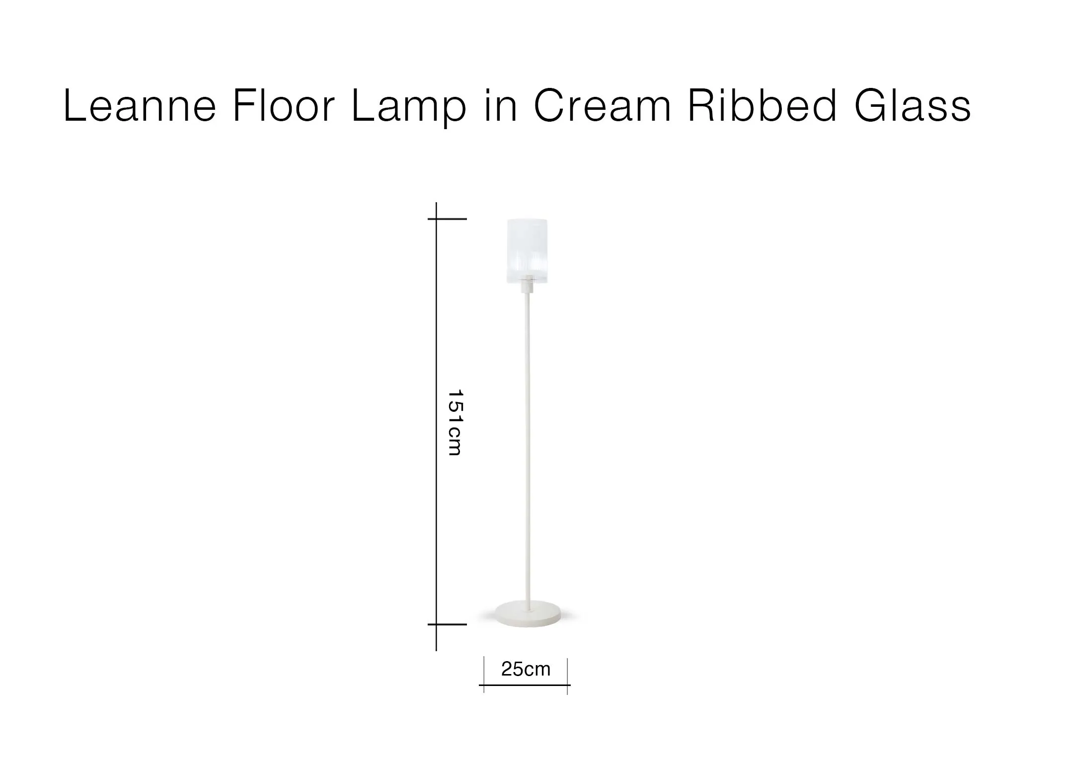 Cream Floor Lamp with Ribbed Glass Shade - Leanne