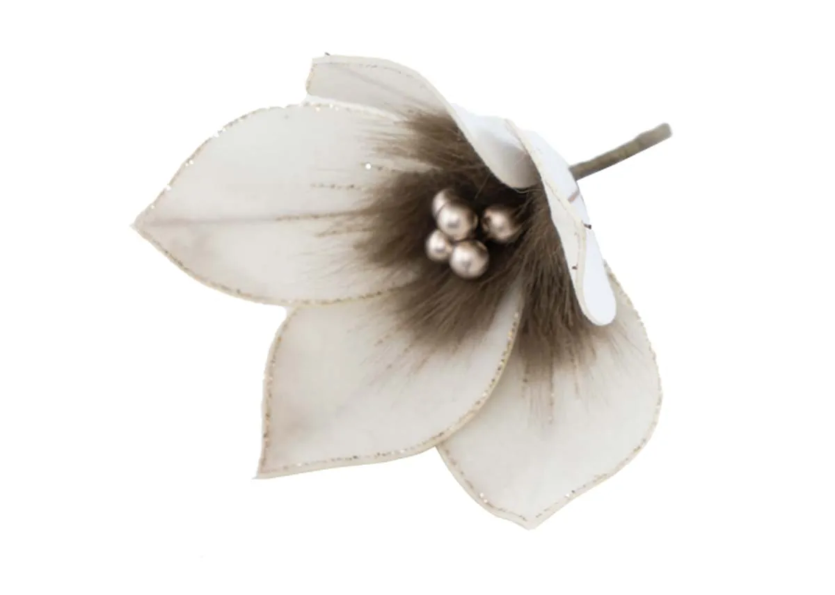 Add a touch of elegant sparkle to your festive decor with this beautiful cream glitter flower.