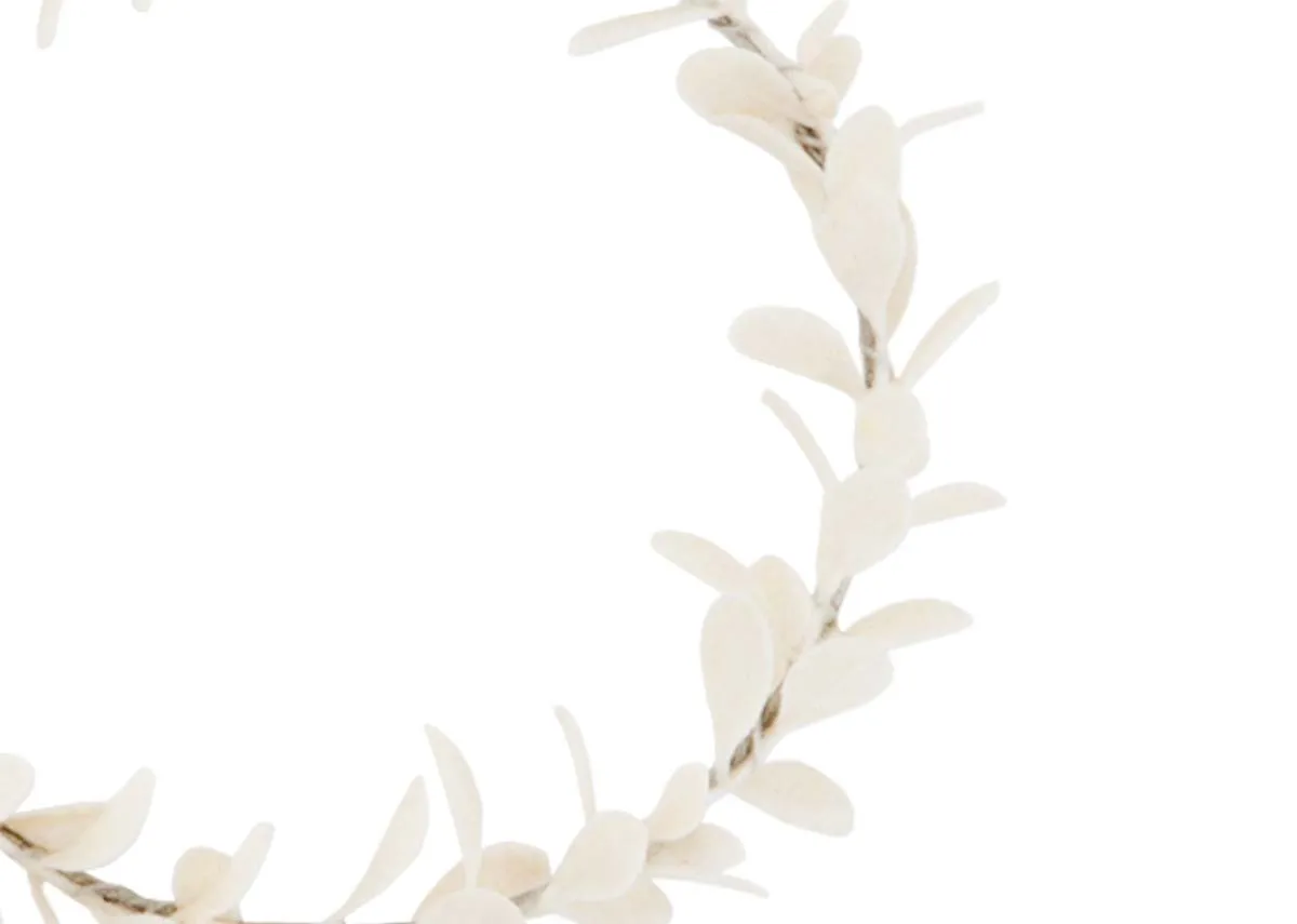 Cream velvet eucalyptus leaves are organised in a round pattern to create the striking Cream Circle Hanging Ornament.