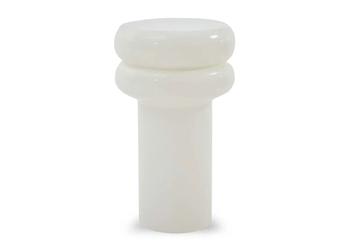 A tall pillar side table made with iron and finished in a neutral cream glossy paint, ideal for your living or bedroom.