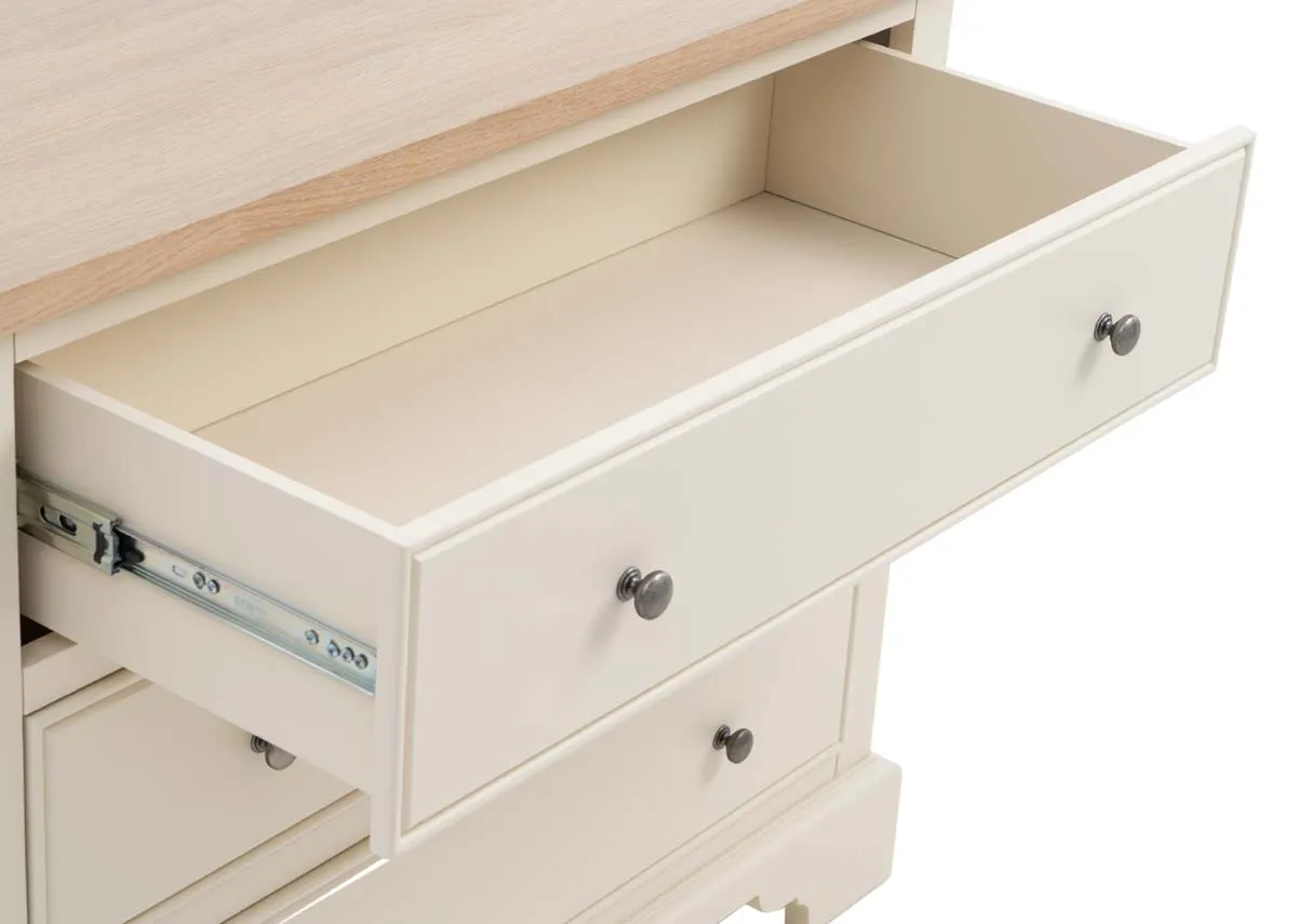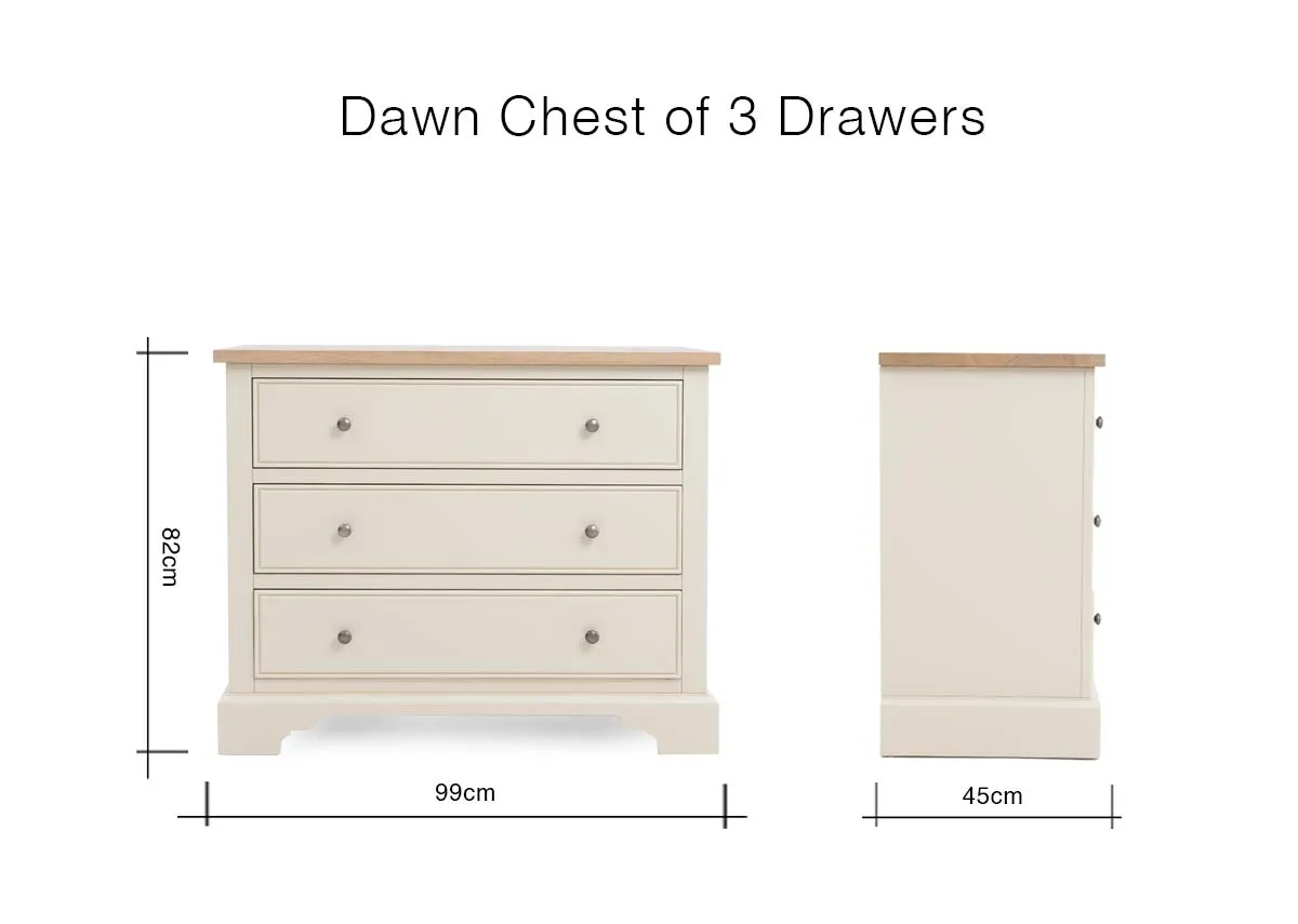 A 3 drawer chest of drawers with enough space for storage and a pine top for a small mirror or some accessories.