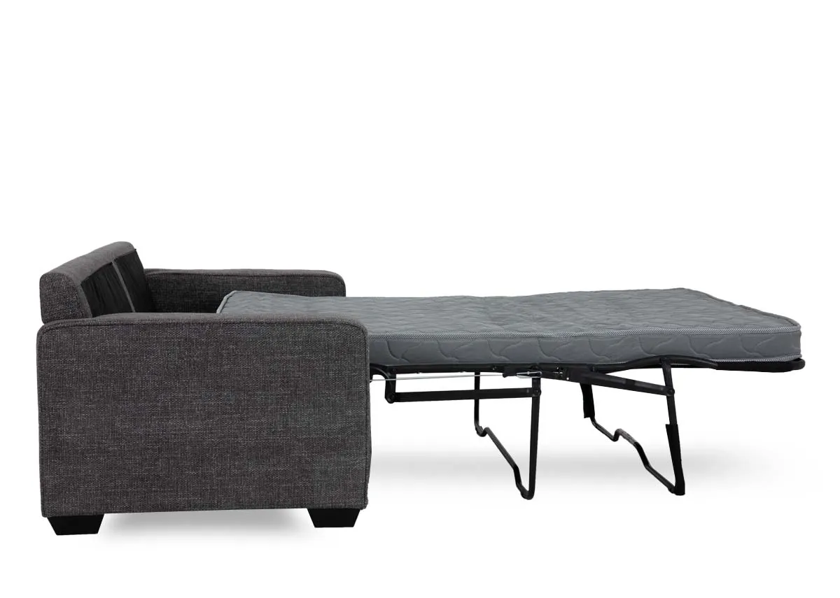The Nevada dark grey sofa bed's chic fabric and sleek design allow it to blend in seamlessly with the rest of your decor as a 2 seater sofa, while with just a simple manual manoeuvre you have a comfy double bed.
