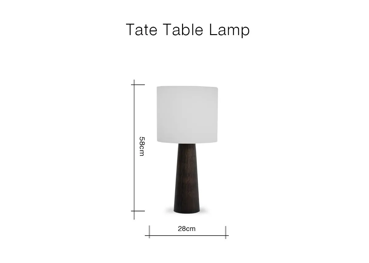 Dark Wood Table Lamp with White Shade - Tate